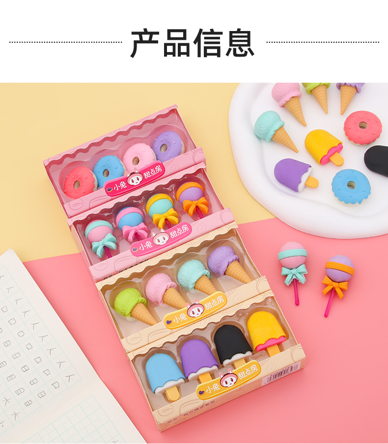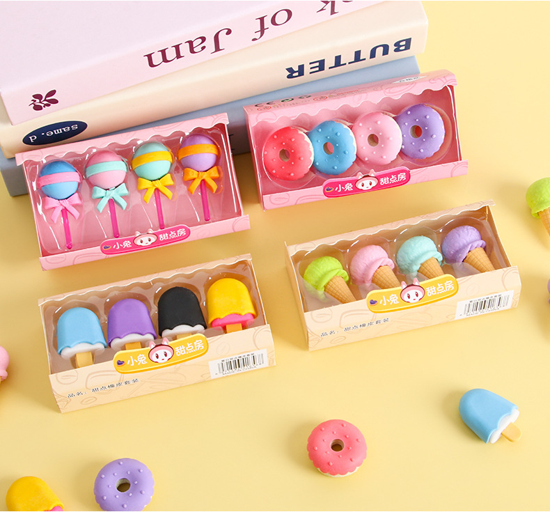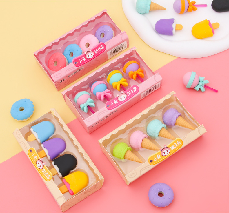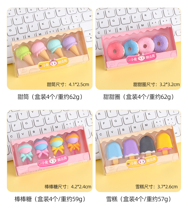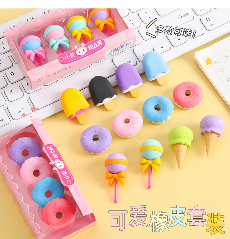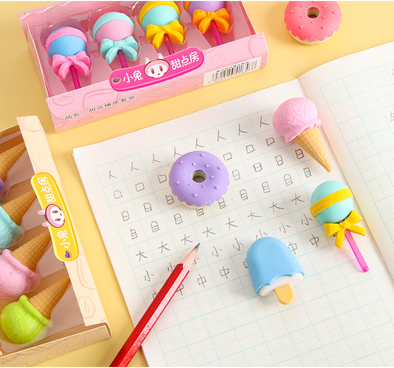 창조적 인 디저트 시뮬레이션 고무 학생 귀여운 박스형 원활한 비 떨어지는 고무 어린이 문구 세트 도매