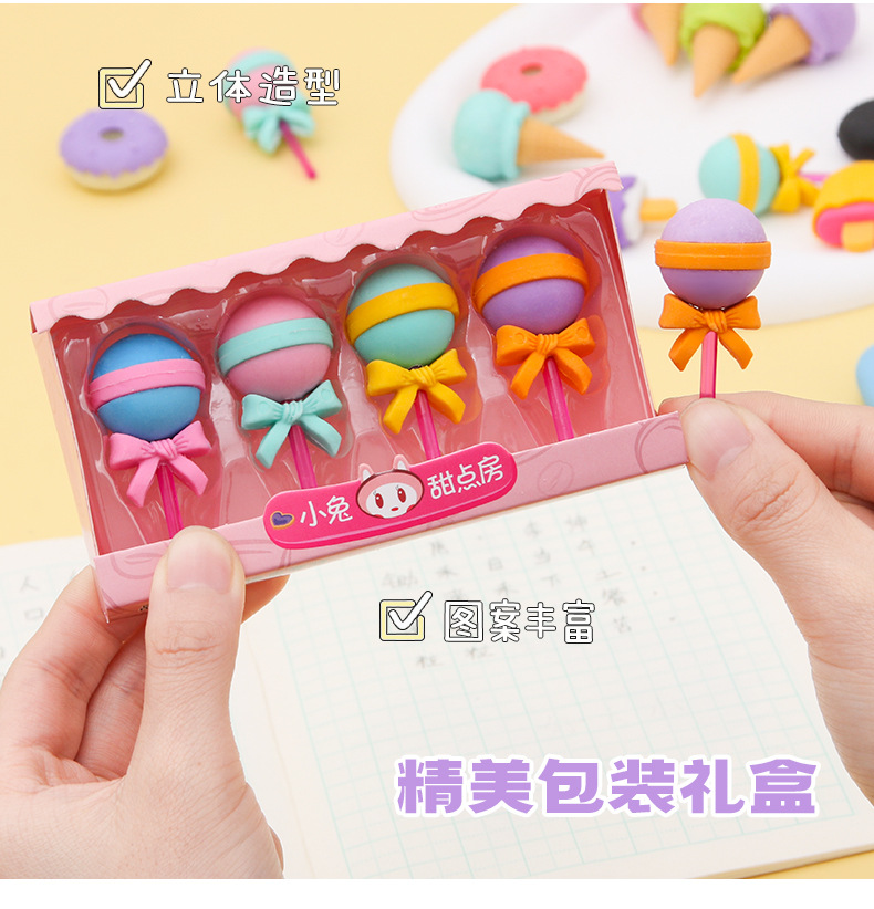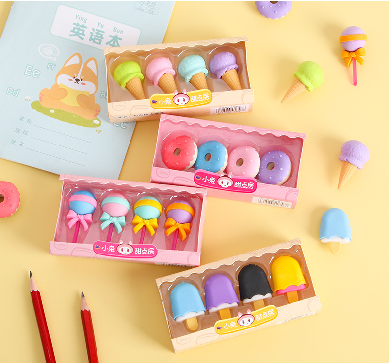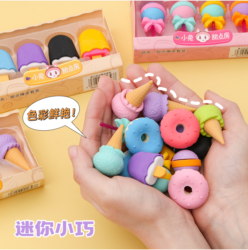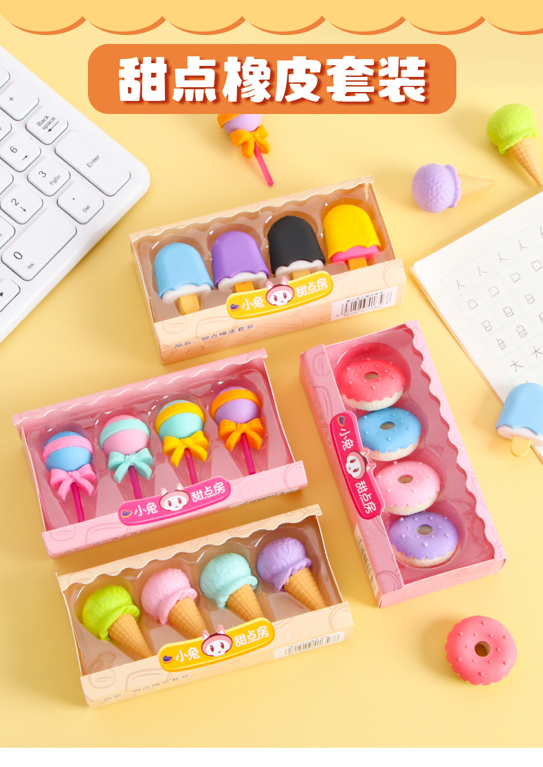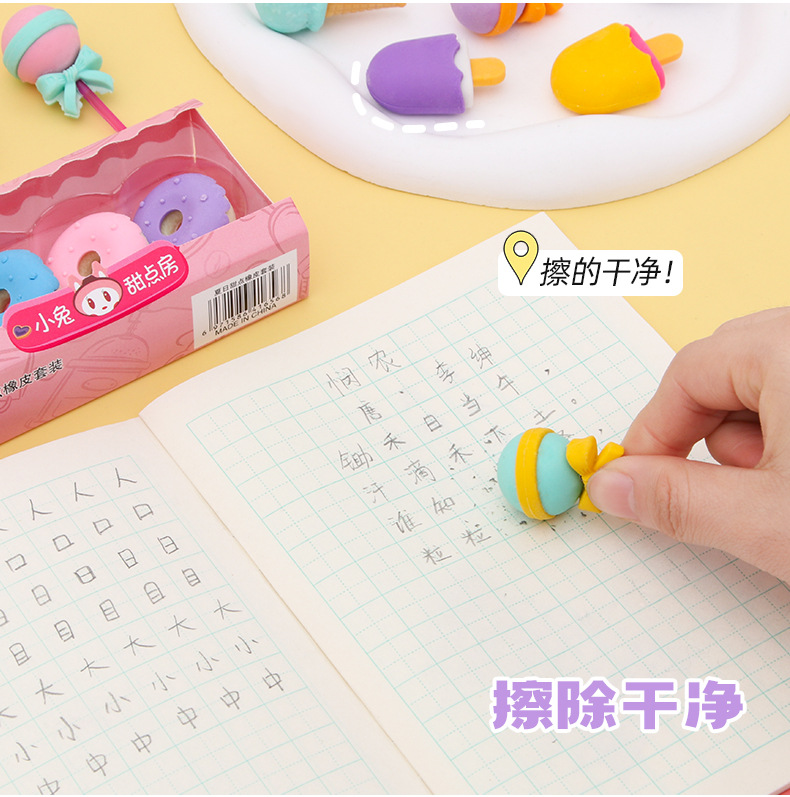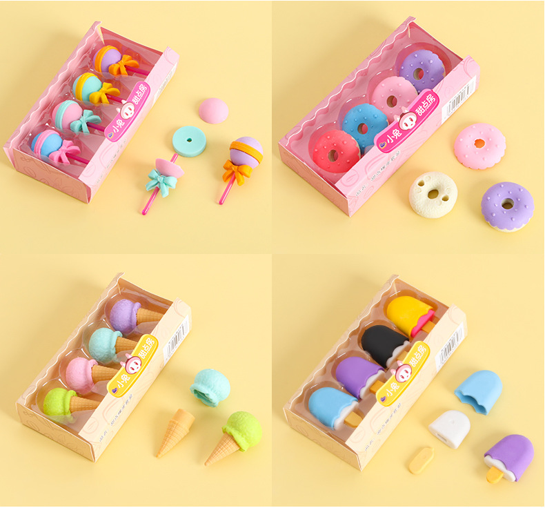 창조적 인 디저트 시뮬레이션 고무 학생 귀여운 박스형 원활한 비 떨어지는 고무 어린이 문구 세트 도매