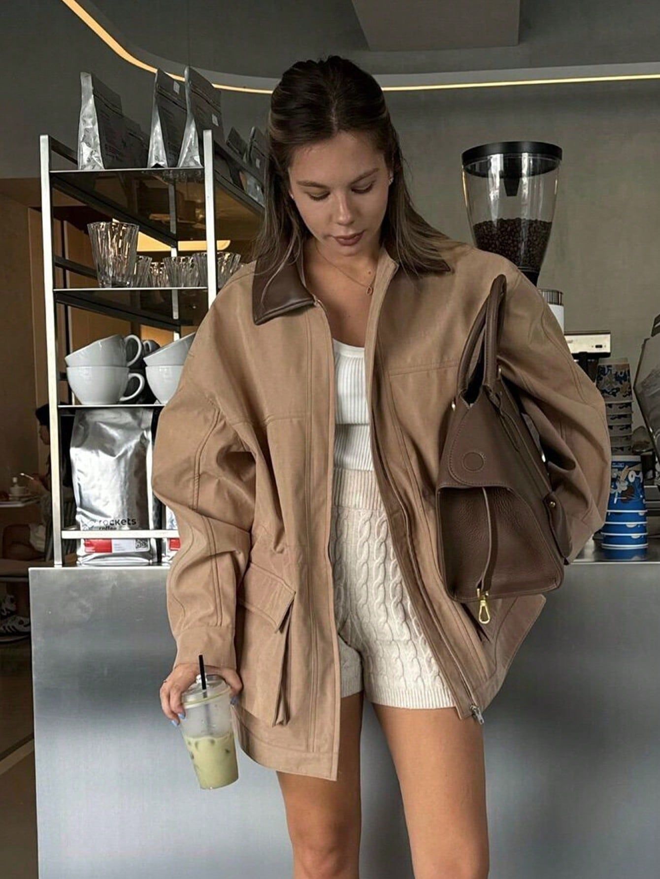 국경 간 도매 여성 의류 가을 겨울 신상 유럽풍 라펠 대형 포켓 스웨이드 보온 재킷스토어 가기