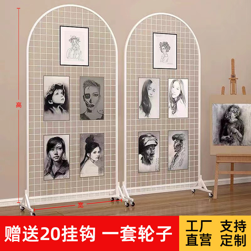 연철 그리드 접이식 디스플레이 랙 유치원 예술 지역 작품 서예 전시회 라운드 수직 모바일 스토리지 랙