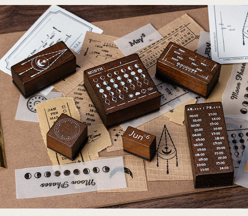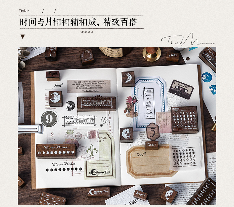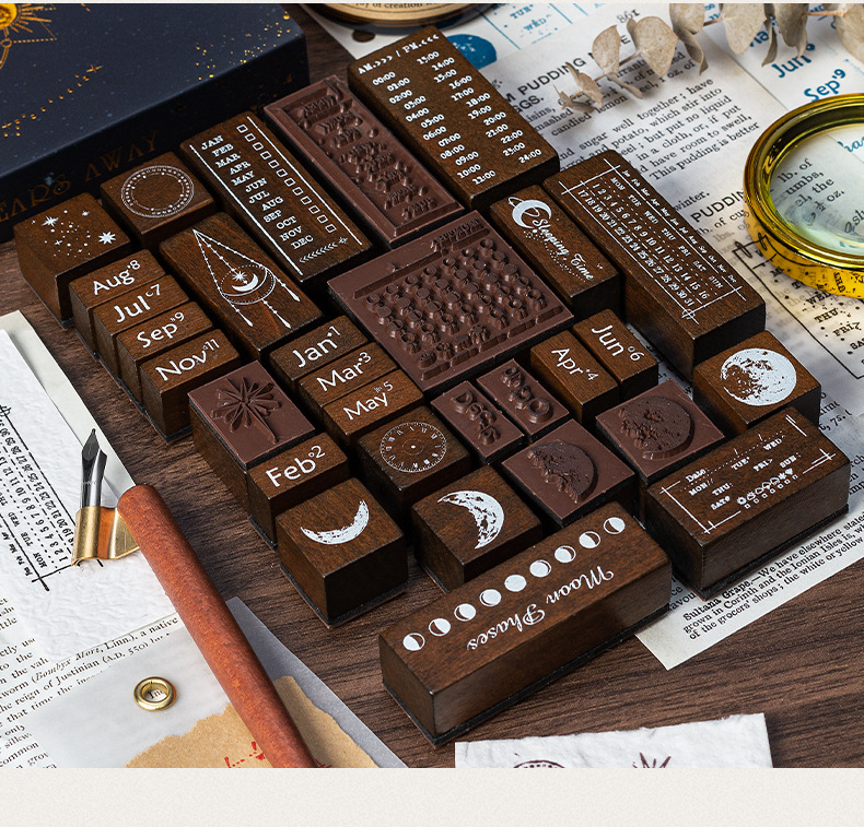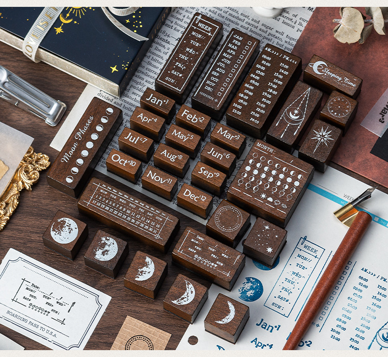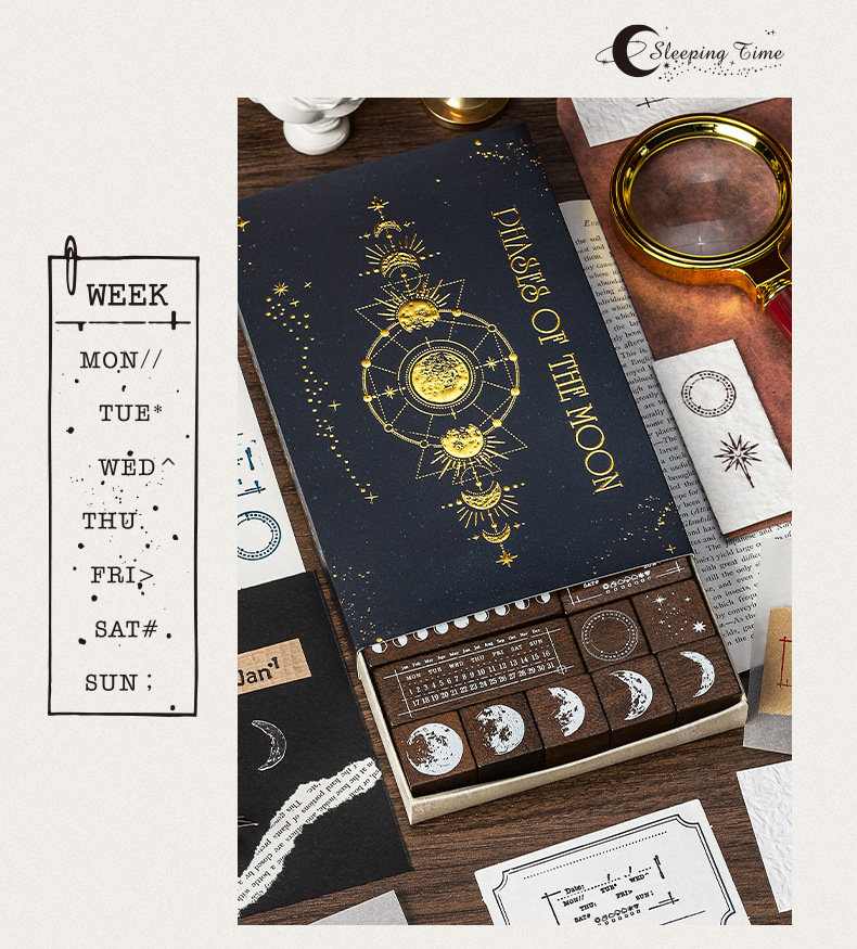 달 스타 나무 물개 세트 상자 다년생 달력 주 달 손 계정 씰 30 국경 문 씰