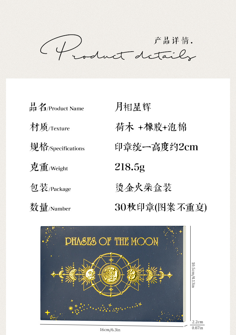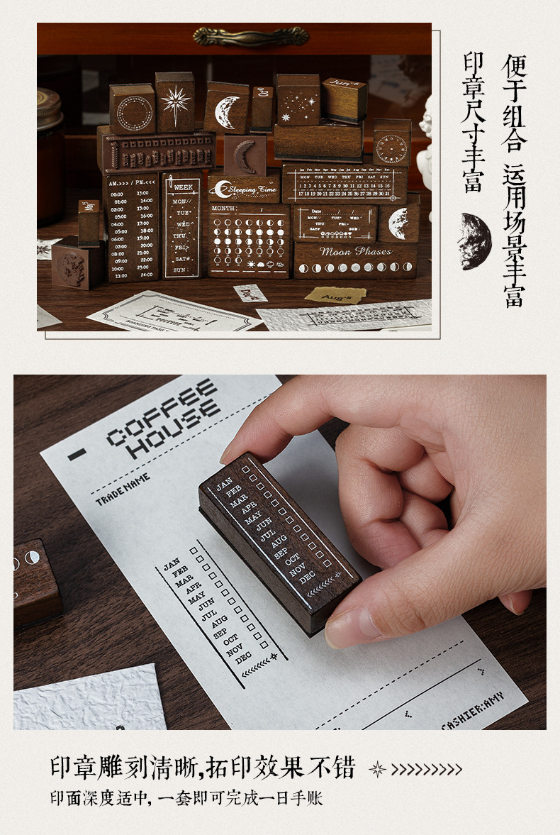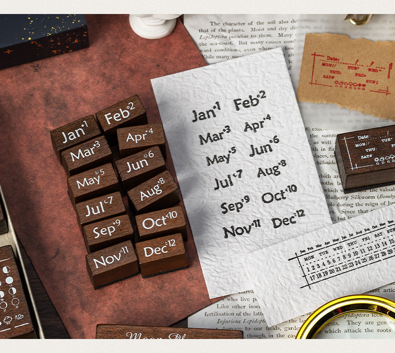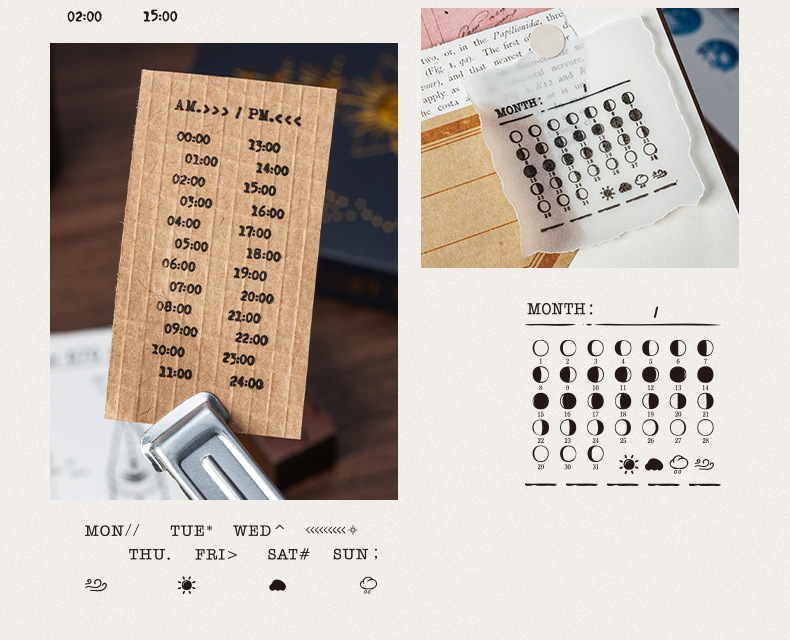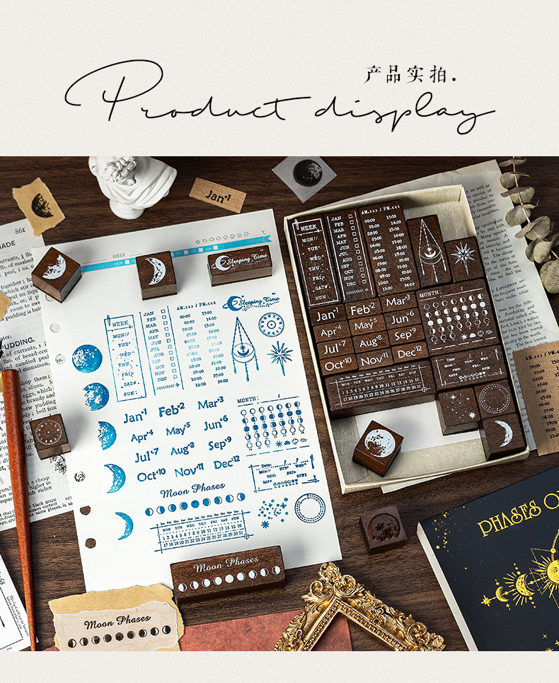 달 스타 나무 물개 세트 상자 다년생 달력 주 달 손 계정 씰 30 국경 문 씰