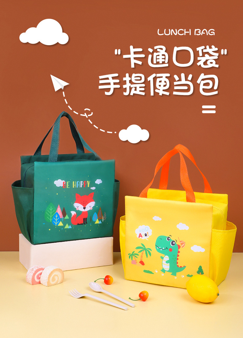 만화 더블 포켓 휴대용 열 절연 가방 알루미늄 호일 작업 및 학교 점심 가방 국경 간 아이스 백을 위한 두꺼운 도시락 가방스토어 가기