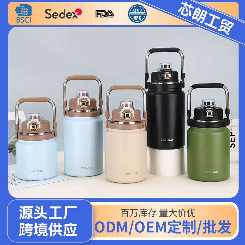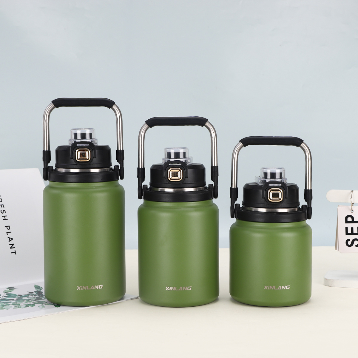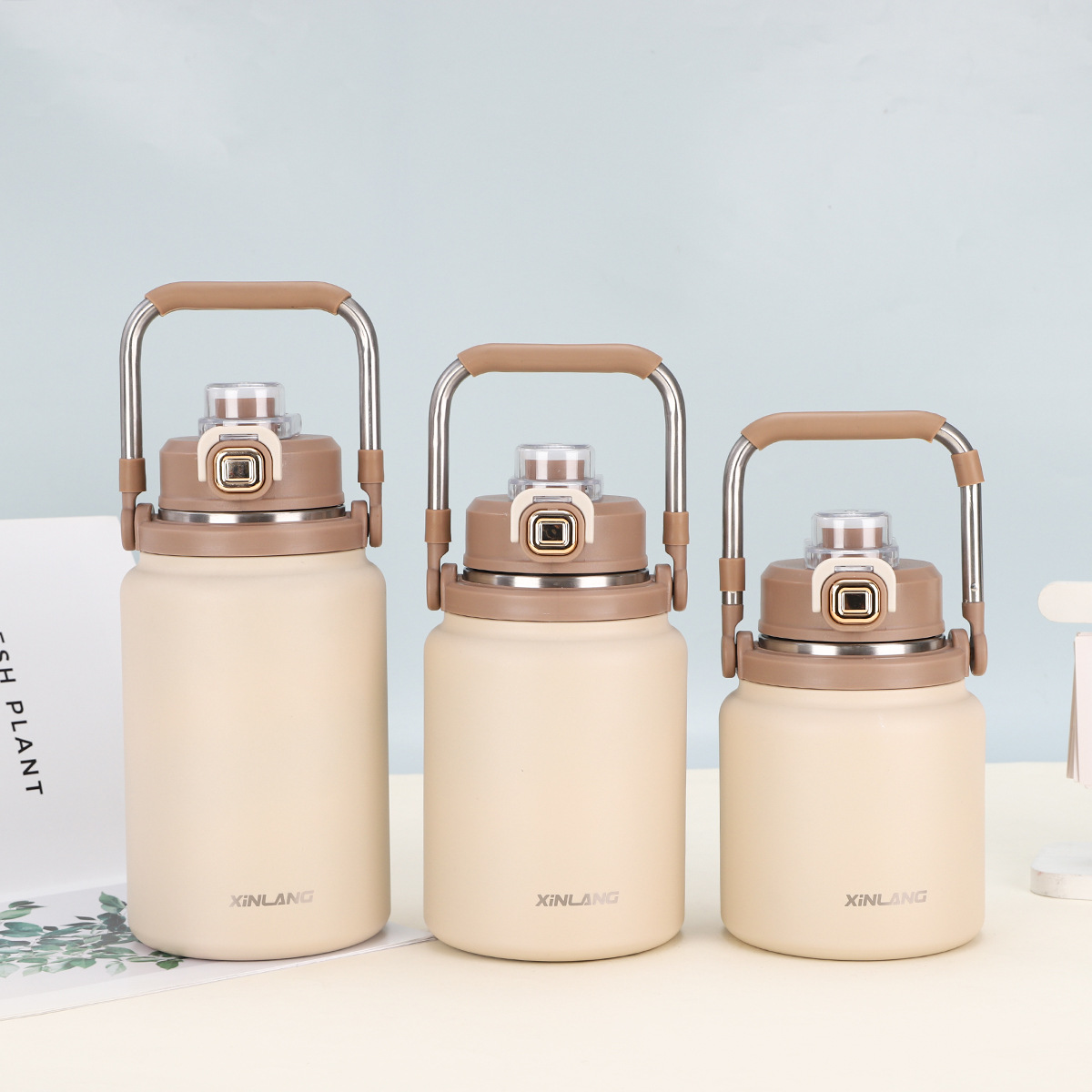 304 스테인리스 보온병 대용량 탄성 빨대컵 남녀공용 야외 손잡이 보온병 스포츠 물병
