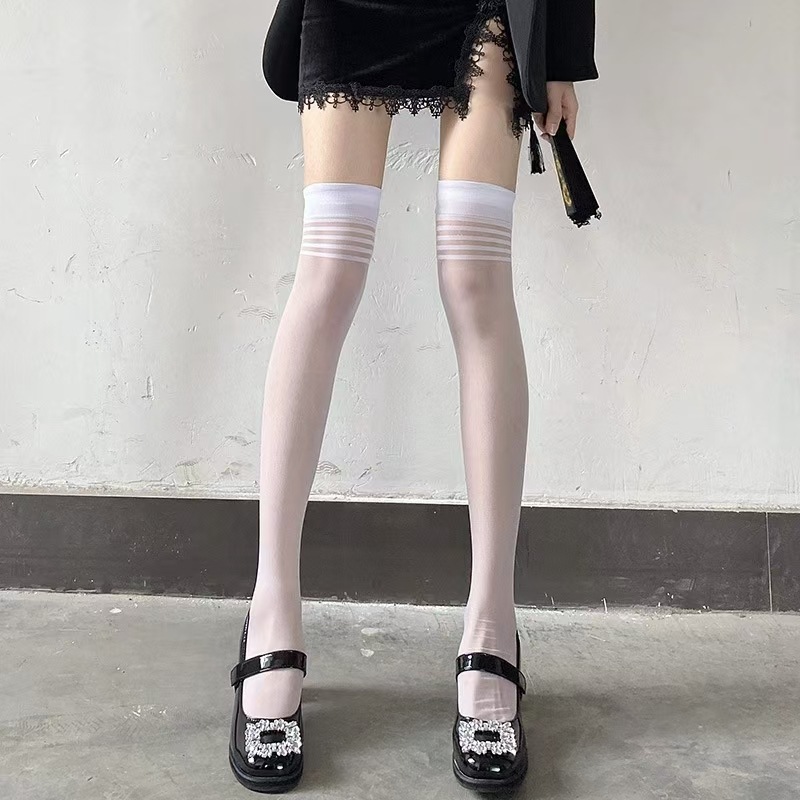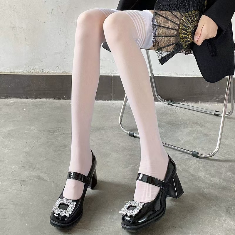 무릎 위 스타킹 여성의 얇은 흰색 4 바 섹시한 허벅지 양말 jk 블랙 스타킹 화이트 실크스토어 가기