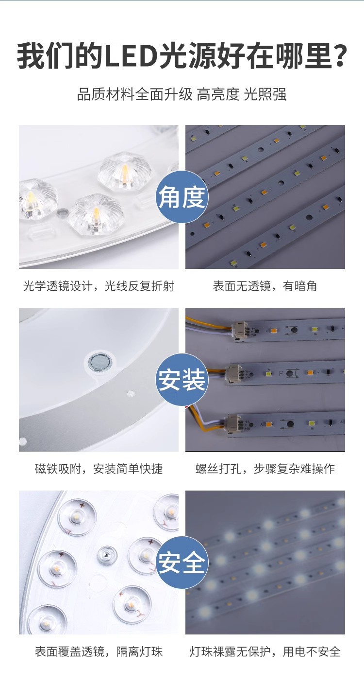 LED 천장 램프 링 모듈 교체 심지 링 라운드 광원 모듈 개조 램프 패널 램프 패널 렌즈 램프 비드