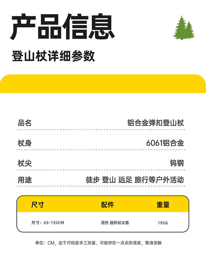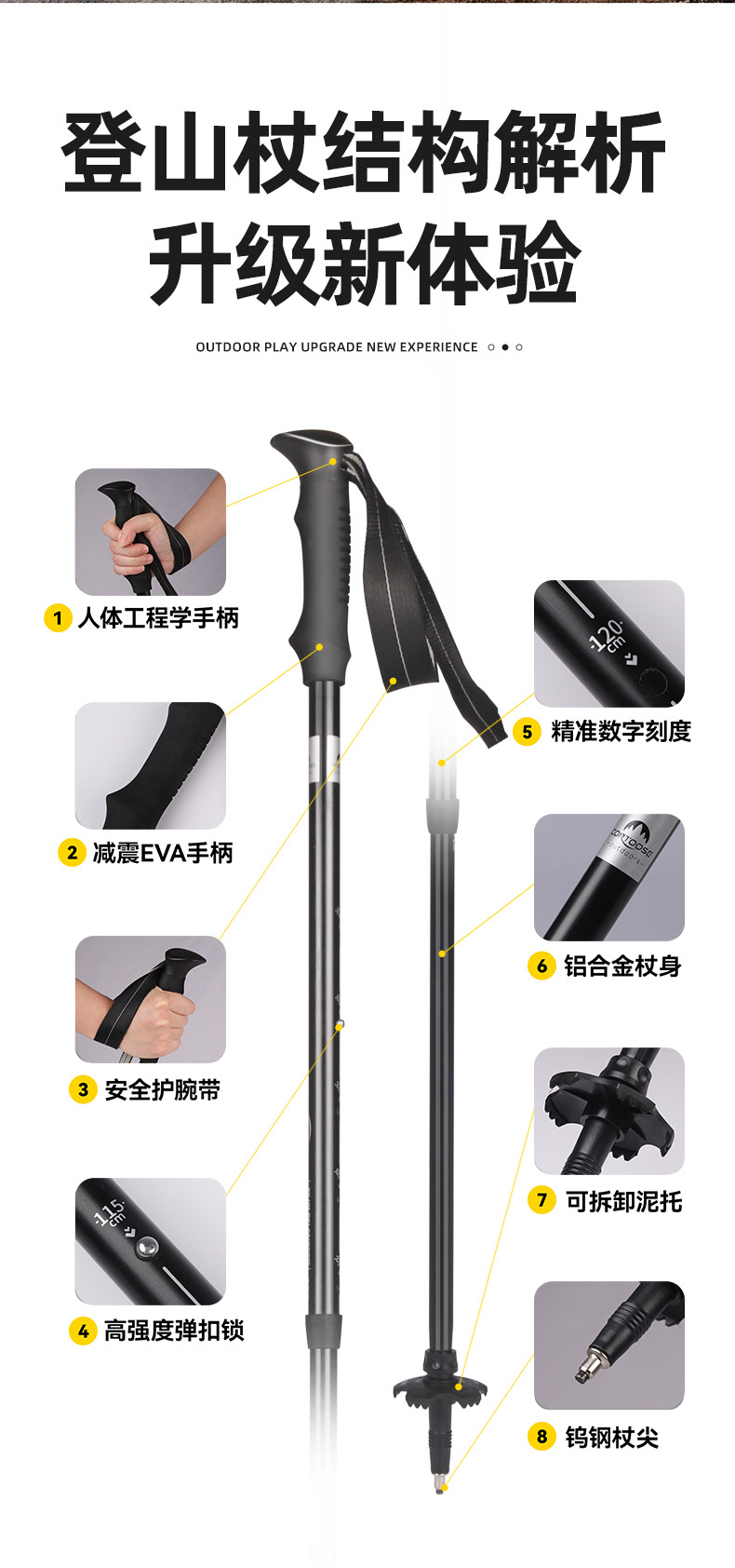 쿠앙투 야외 등산 스틱, 버클식 알루미늄 합금 3단 접이식 지팡이, 등산 및 하이킹 장비, 미끄럼 방지 지팡이
