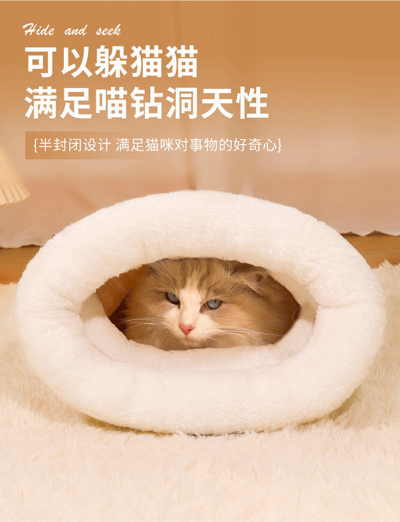 잠자는 가방 닫힌 봉제 개집 고양이 따뜻한 겨울 고양이 비 스틱 울 둥지 단열 고양이 매트 통합 방풍