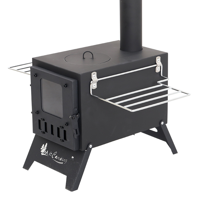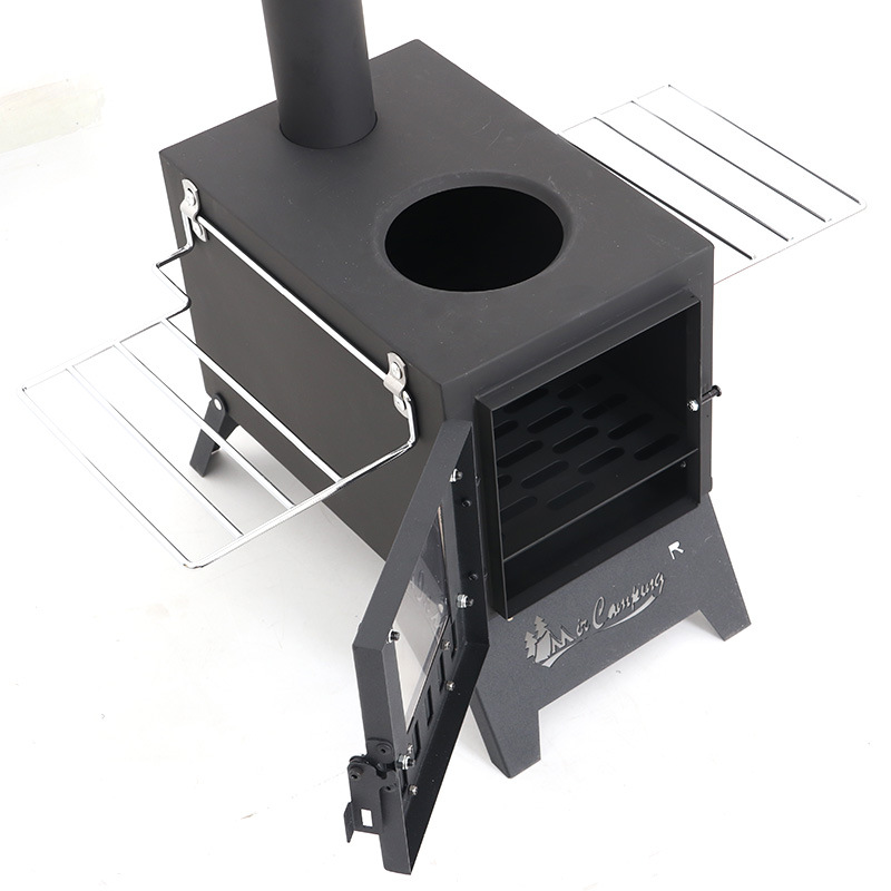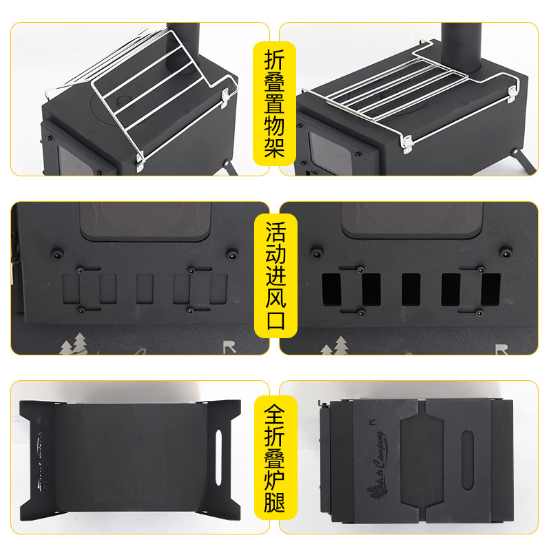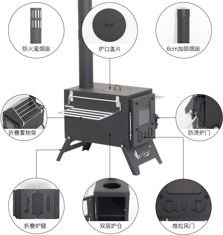 국경 간 야외 장작 난로 굴뚝 다기능 바베큐 오븐 완전 접이식 난방 오븐 나무 속보 겨울 낚시 난방 장비스토어 가기