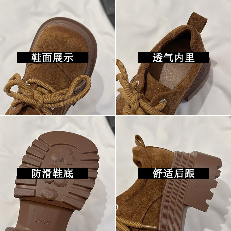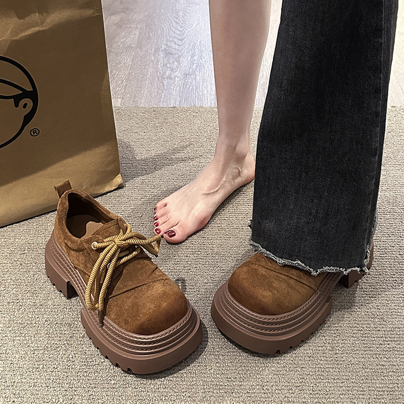 두꺼운 밑창 영국 스타일의 작은 가죽 신발 여성 가을과 겨울 2024 새로운 도착 Bocken 여성 신발 복고풍 큰 머리 단층 신발 다크 브라운 로퍼스토어 가기