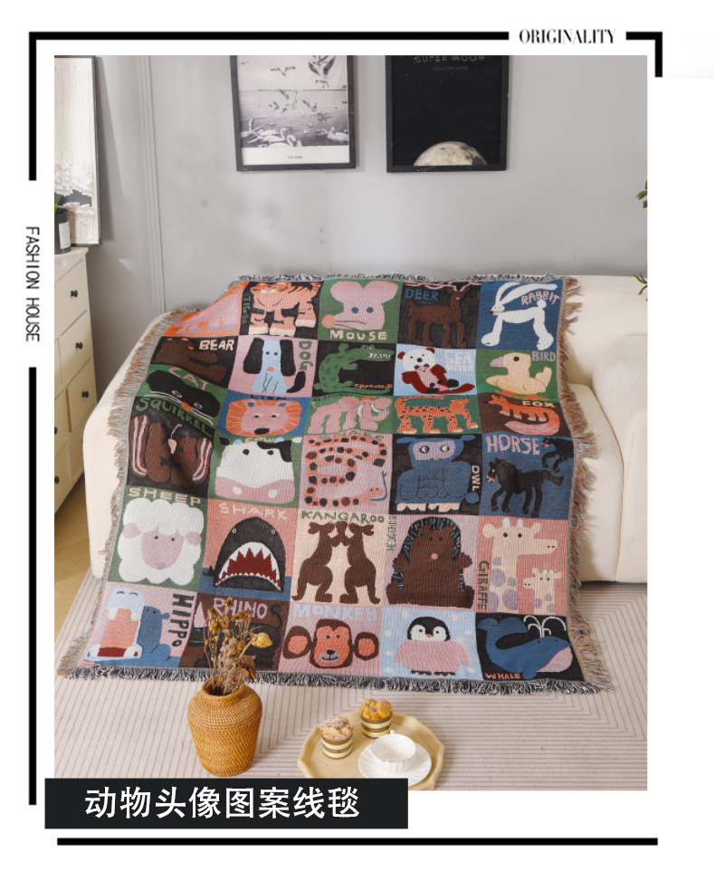 귀여운 만화 동물 아바타 면화 담요 소파 1 인 담요 소파 커버 담요 침대 담요 벽 태피스트리