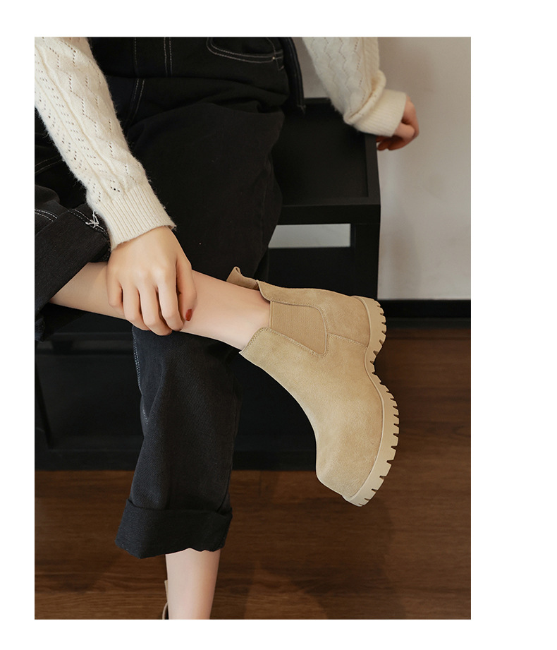 빈티지 내부 높이 증가 두꺼운 바닥 마틴 부츠 여자 2025 봄 새로운 도착 프로스트 가죽 연기 부츠 캥거루 첼시 발목 부츠스토어 가기