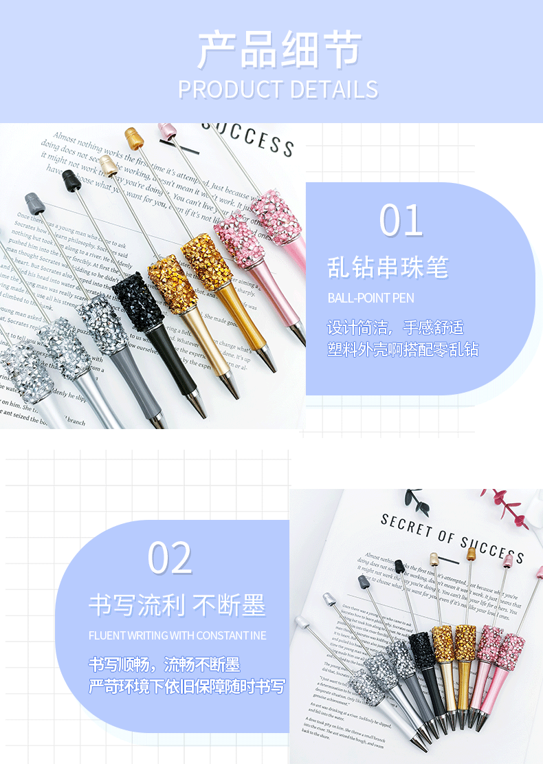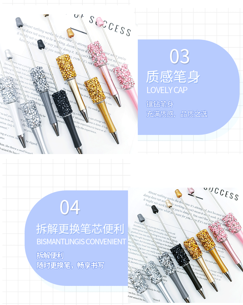 창조적 인 DIY 무작위 드릴 구슬 펜 바람 더블 주문 바위 사랑스러운 구슬 펜 손 스틱 드릴 선물 펜 도매스토어 가기