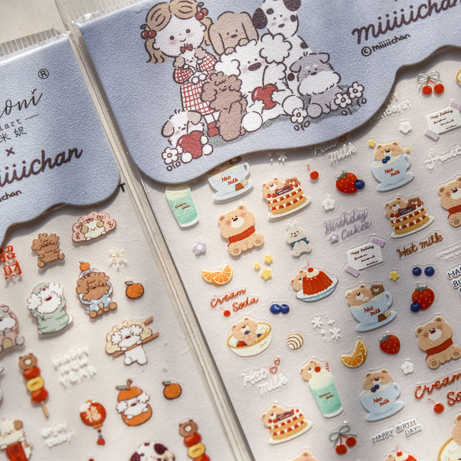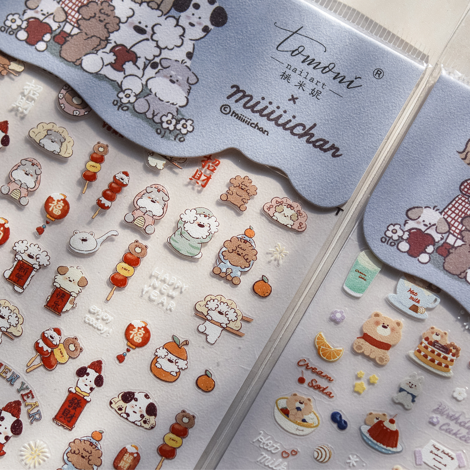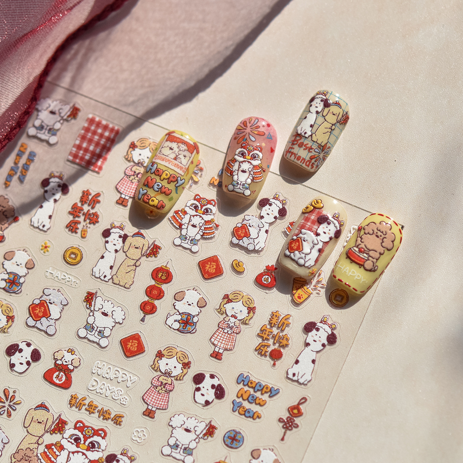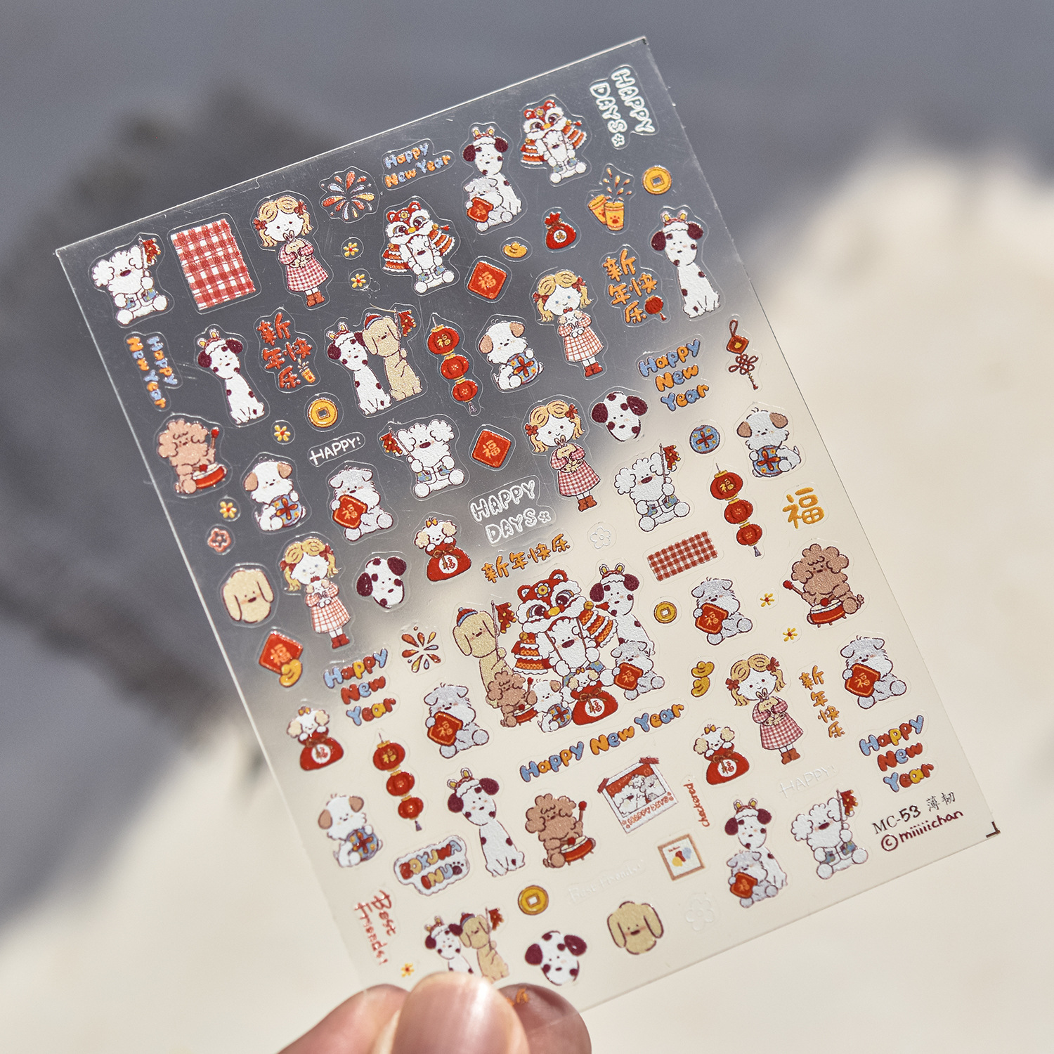 Tomoni 얇은 힘든 네일 아트 스티커 폭발 귀여운 어린이 네일 스티커 공장 도매 새해 왕 왕 왕 왕 가족 강아지