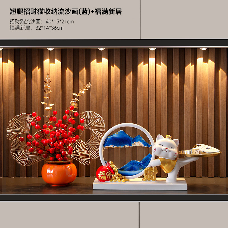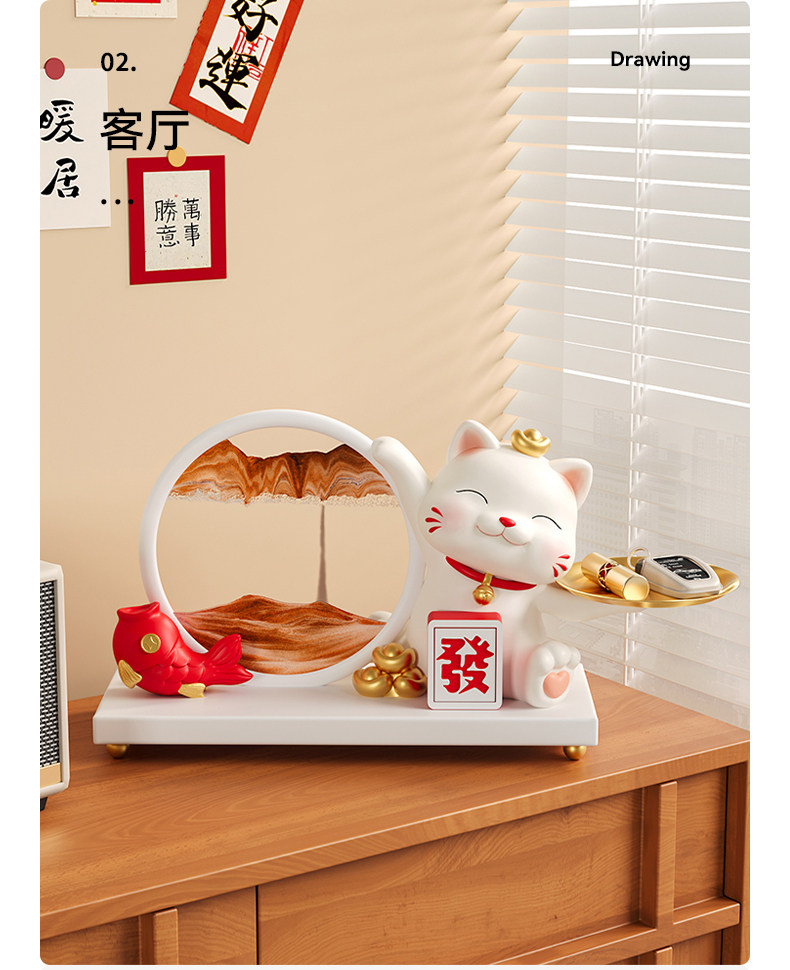 행운의 고양이 퀵 샌드 페인팅 장식 홈 입구 키 스토리지 홈 거실 높은 수준의 집들이 선물