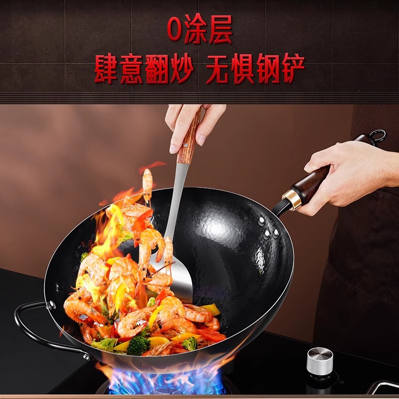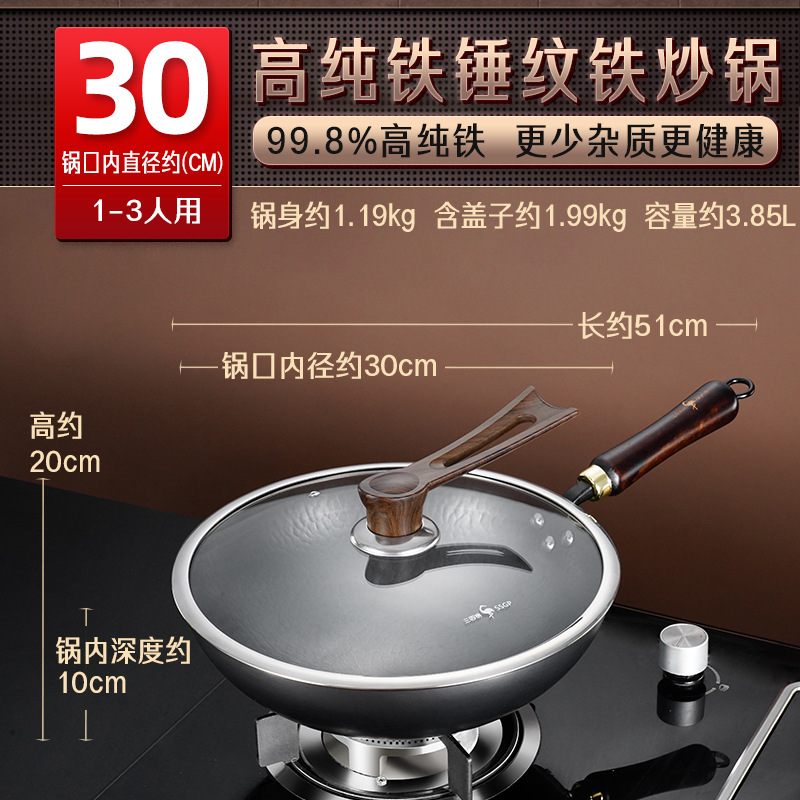 3 개의 4 개의 강철 Zhangqiu 손으로 위조 된 순수 철 냄비 구식 둥근 바닥 철 냄비 가정용 프라이팬 비 스틱 코팅 팬