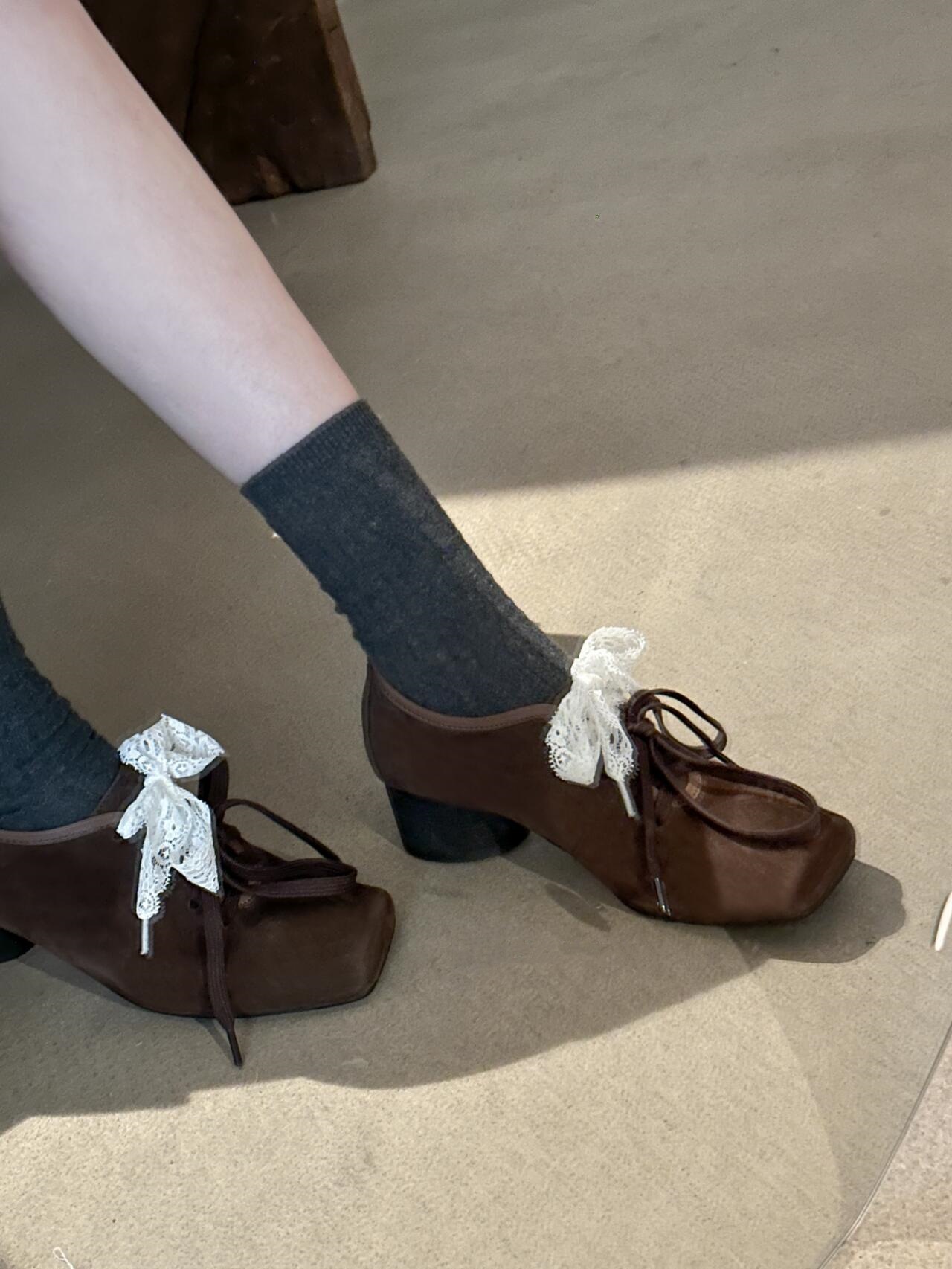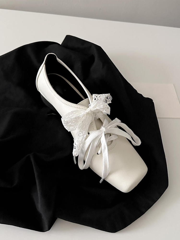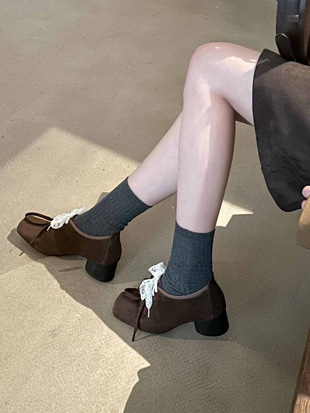 양가죽 버전 ~ 프랑스 메리 제인 작은 가죽 신발 틈새 광장 하이 엔드 레이스 업 흰색 두꺼운 뒤꿈치 신발 스커트