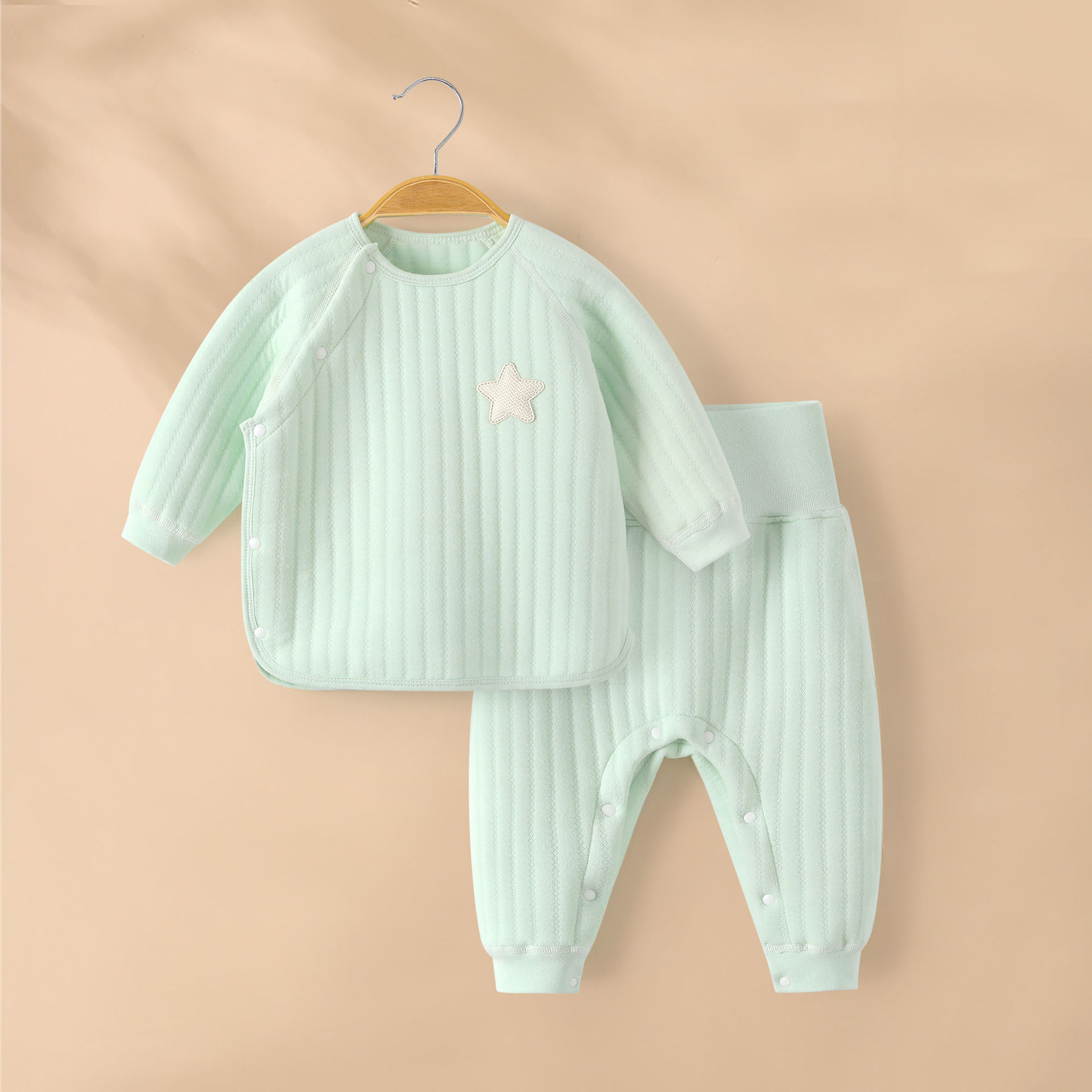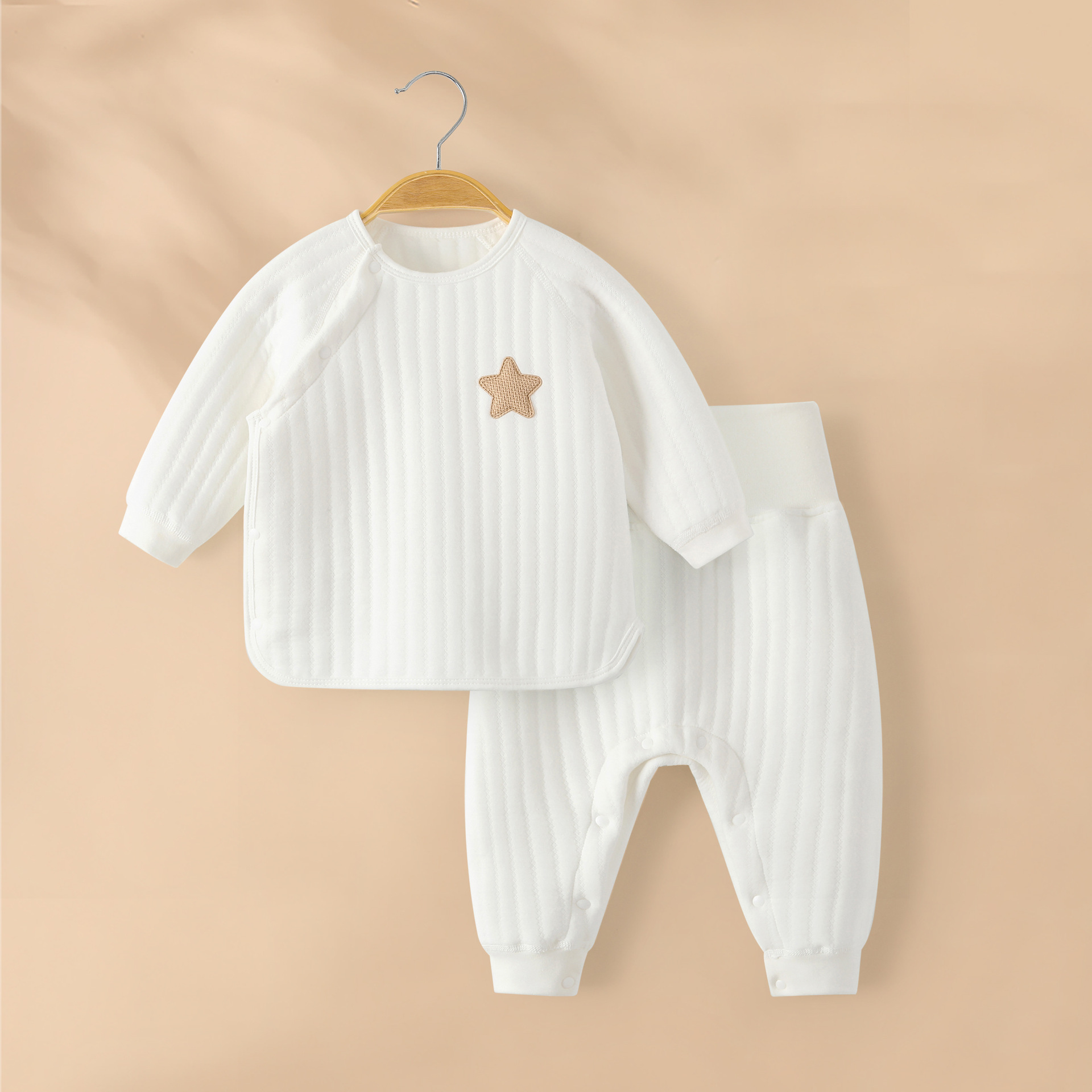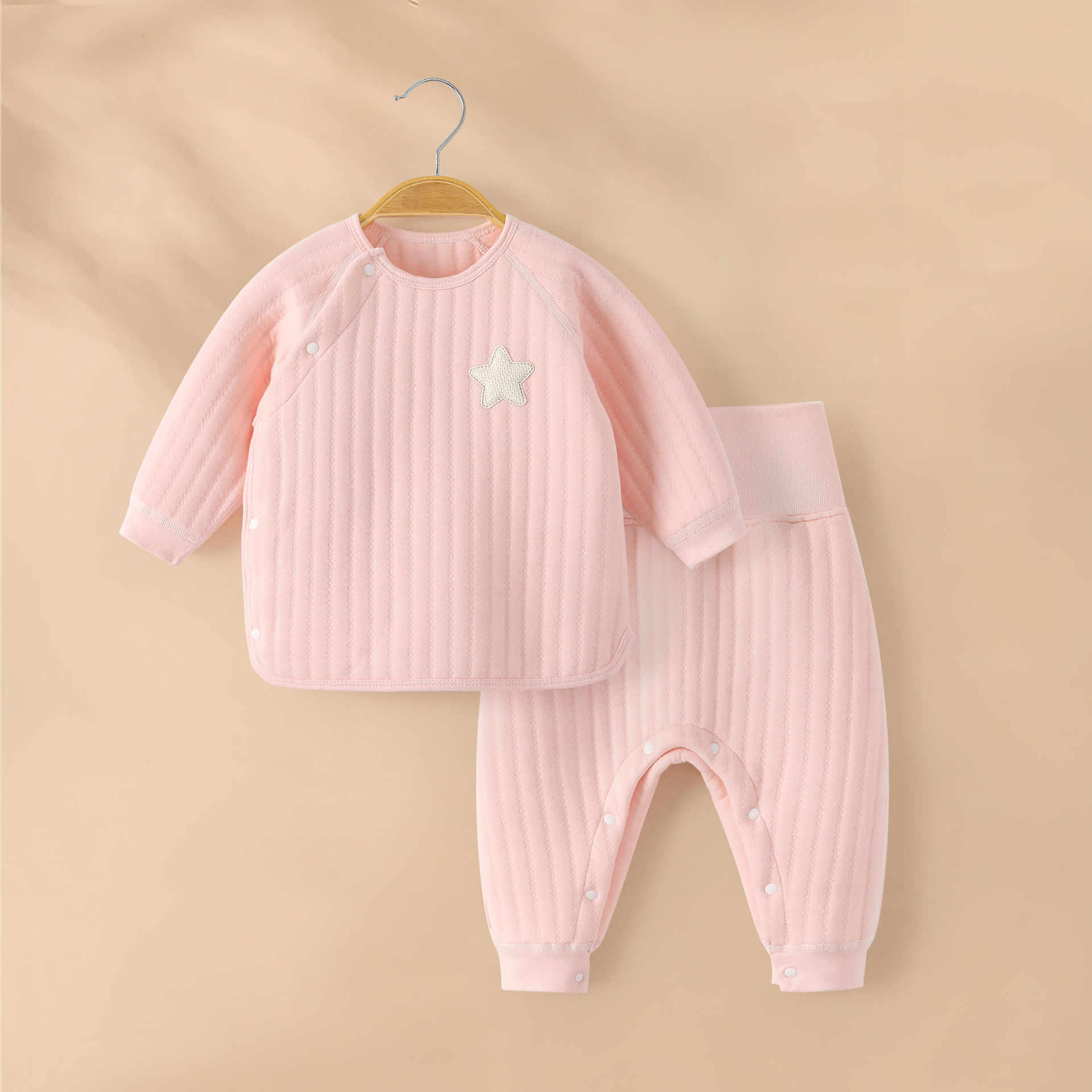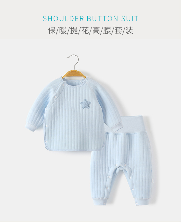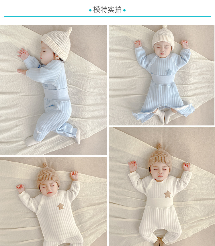 아기 따뜻한 세트 가을과 겨울 높은 허리 배꼽 보호 속옷 코튼 뼈없는 아기 옷 어린이 퀼트 분할 잠옷