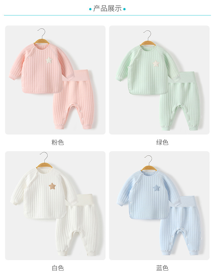 아기 따뜻한 세트 가을과 겨울 높은 허리 배꼽 보호 속옷 코튼 뼈없는 아기 옷 어린이 퀼트 분할 잠옷스토어 가기