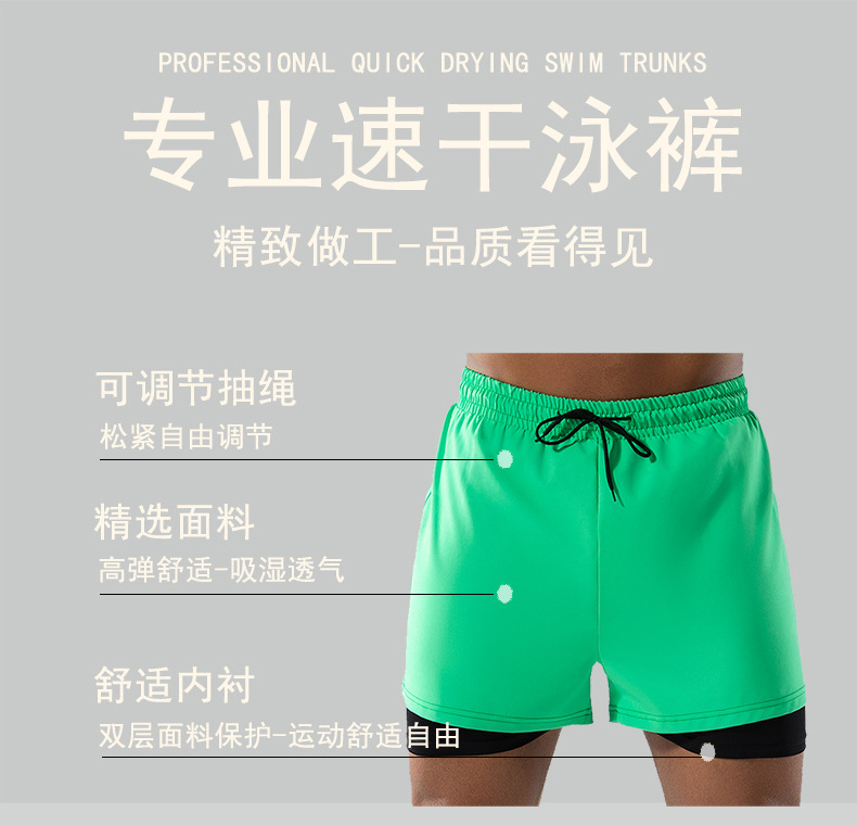 더블 레이어 수영 트렁크 남성용 해변 서핑 바지 온천 남성용 비치 바지 스포츠 안티 당혹감 빠른 건조 반바지 로고 사용자 정의