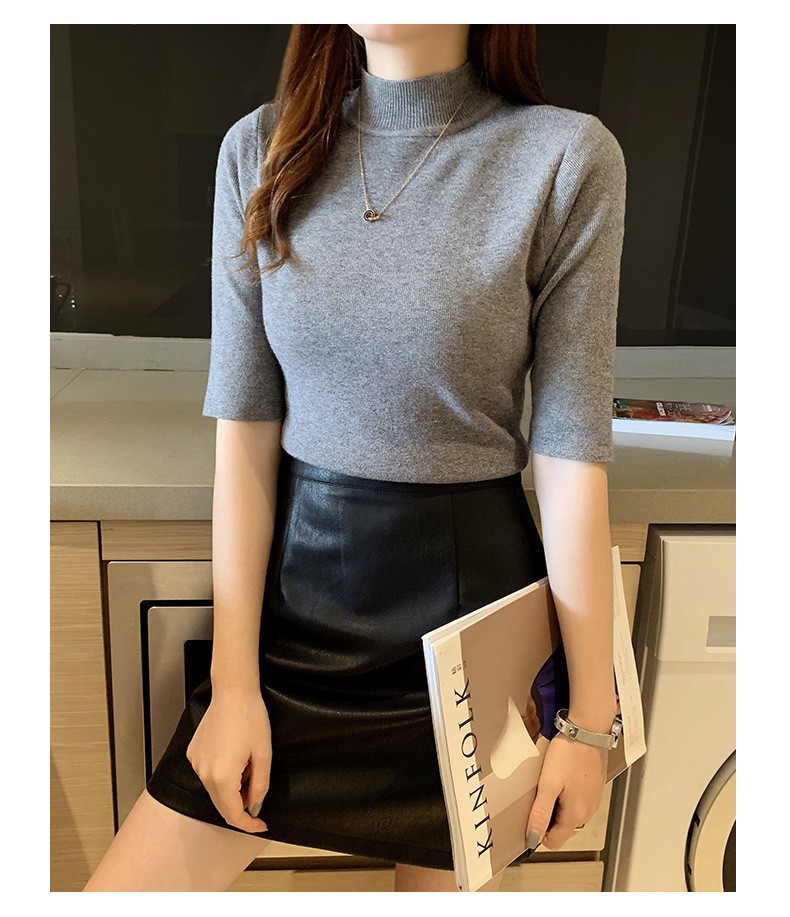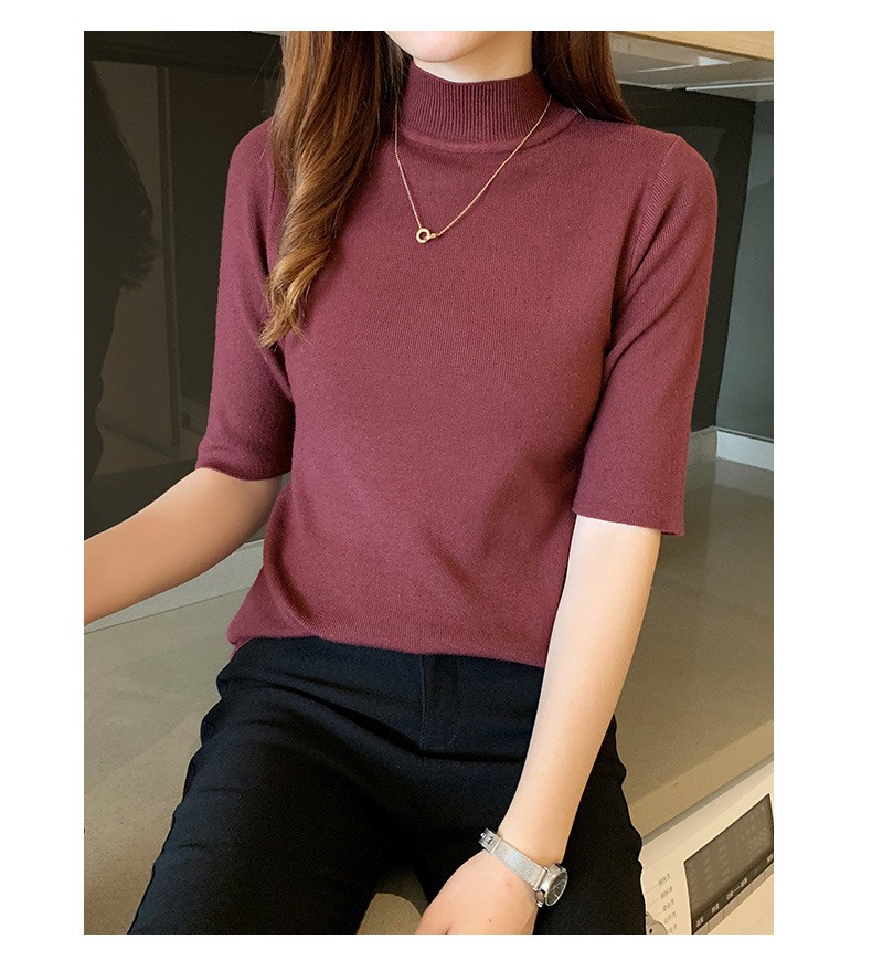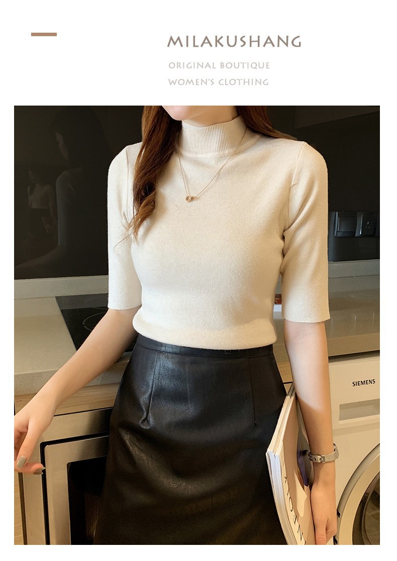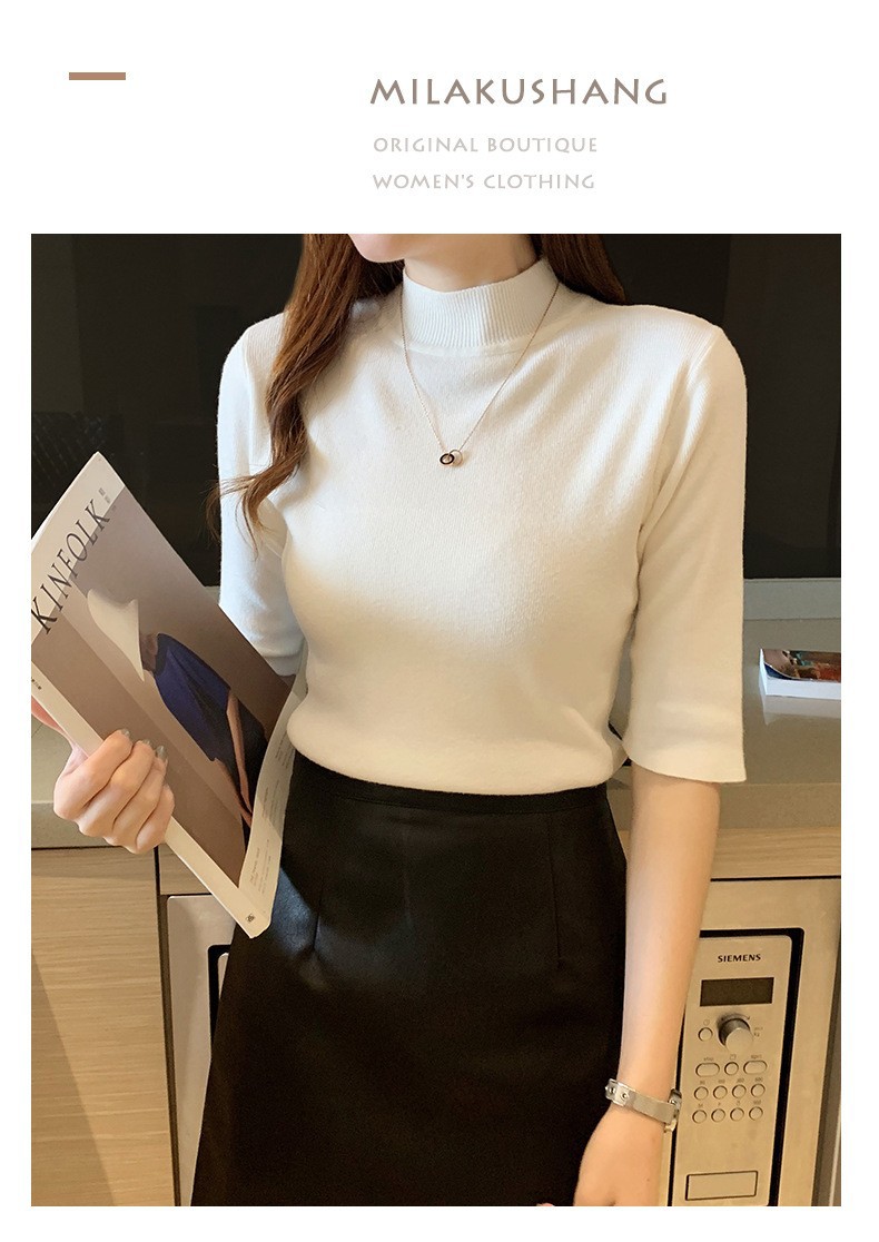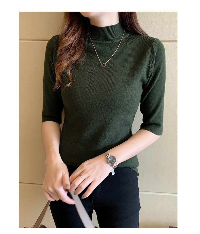 새로운 가을 새로운 도착 하프 하이 칼라 베이스 셔츠 여성용 슬림 핏 내부 풀오버 스웨터 얇은 미드 슬리브 스웨터 탑