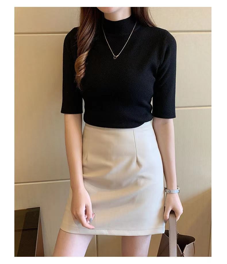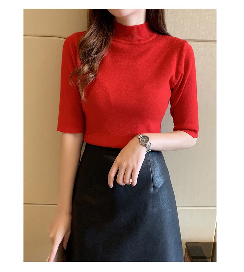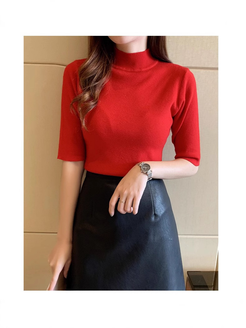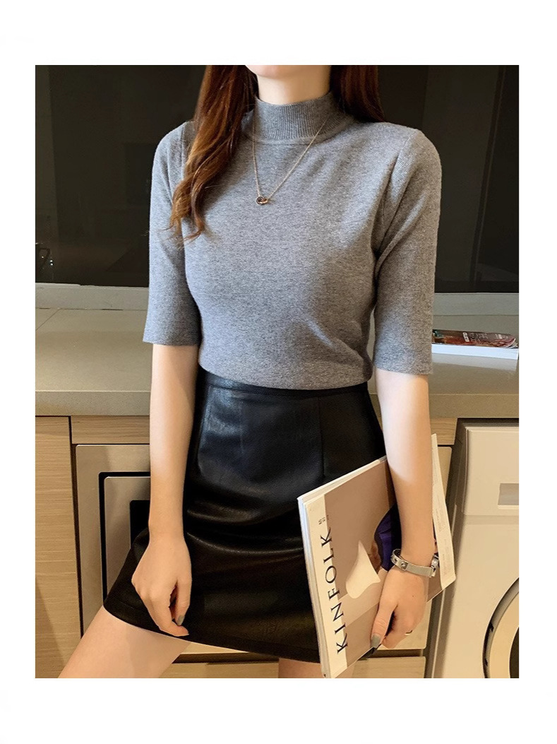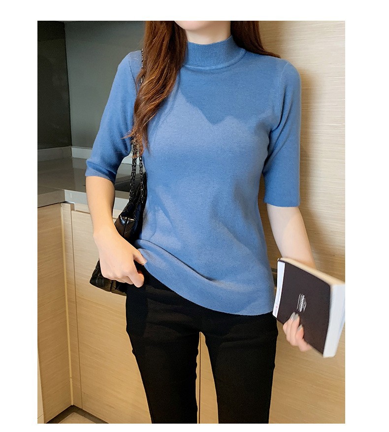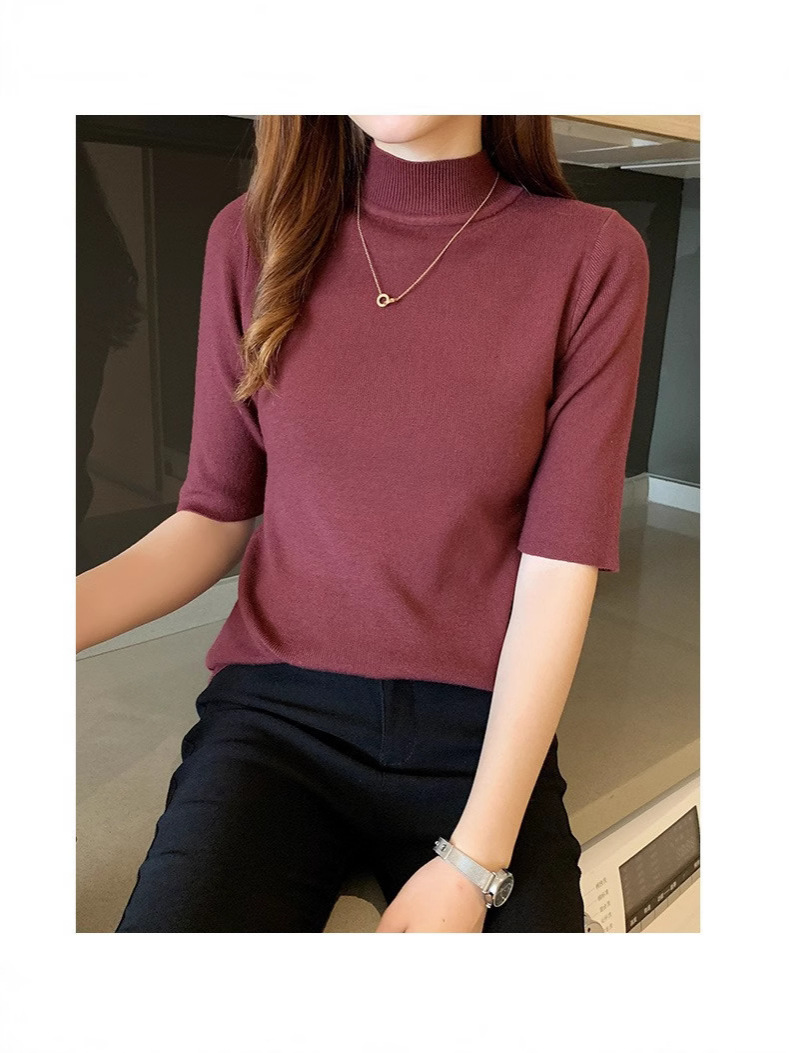 새로운 가을 새로운 도착 하프 하이 칼라 베이스 셔츠 여성용 슬림 핏 내부 풀오버 스웨터 얇은 미드 슬리브 스웨터 탑