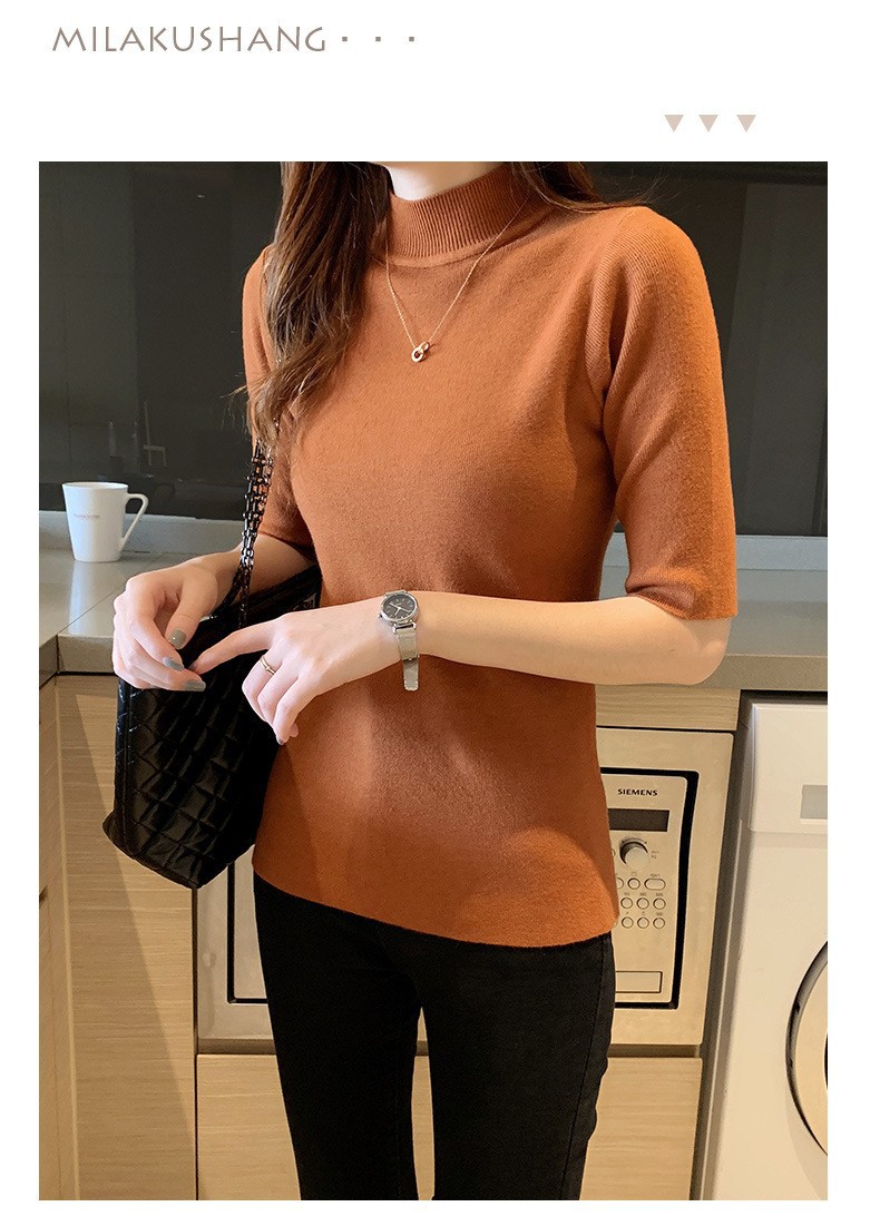 새로운 가을 새로운 도착 하프 하이 칼라 베이스 셔츠 여성용 슬림 핏 내부 풀오버 스웨터 얇은 미드 슬리브 스웨터 탑스토어 가기