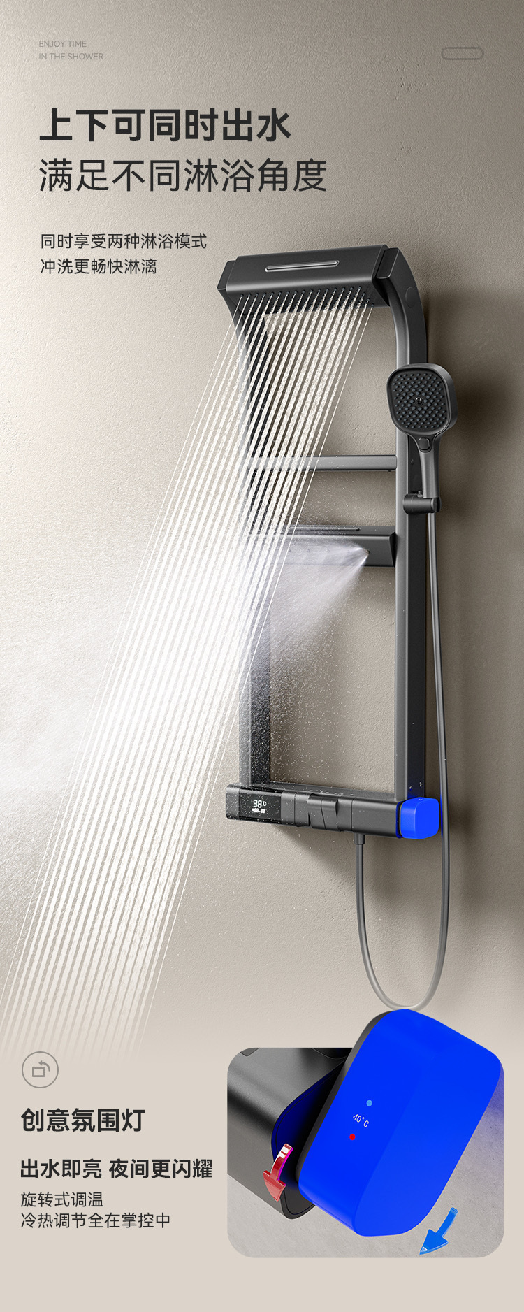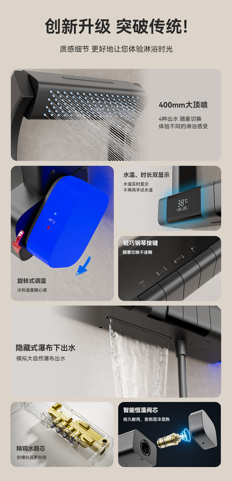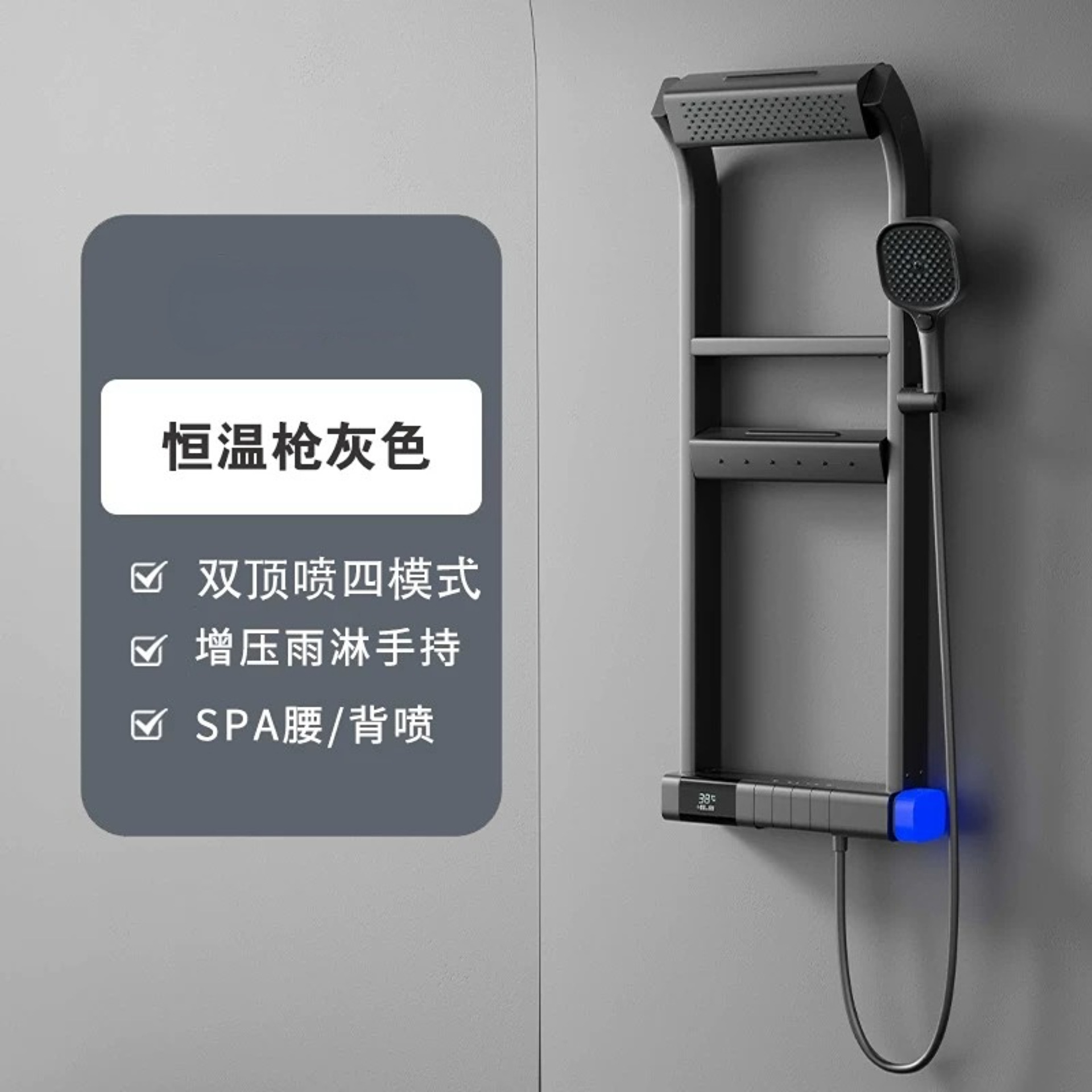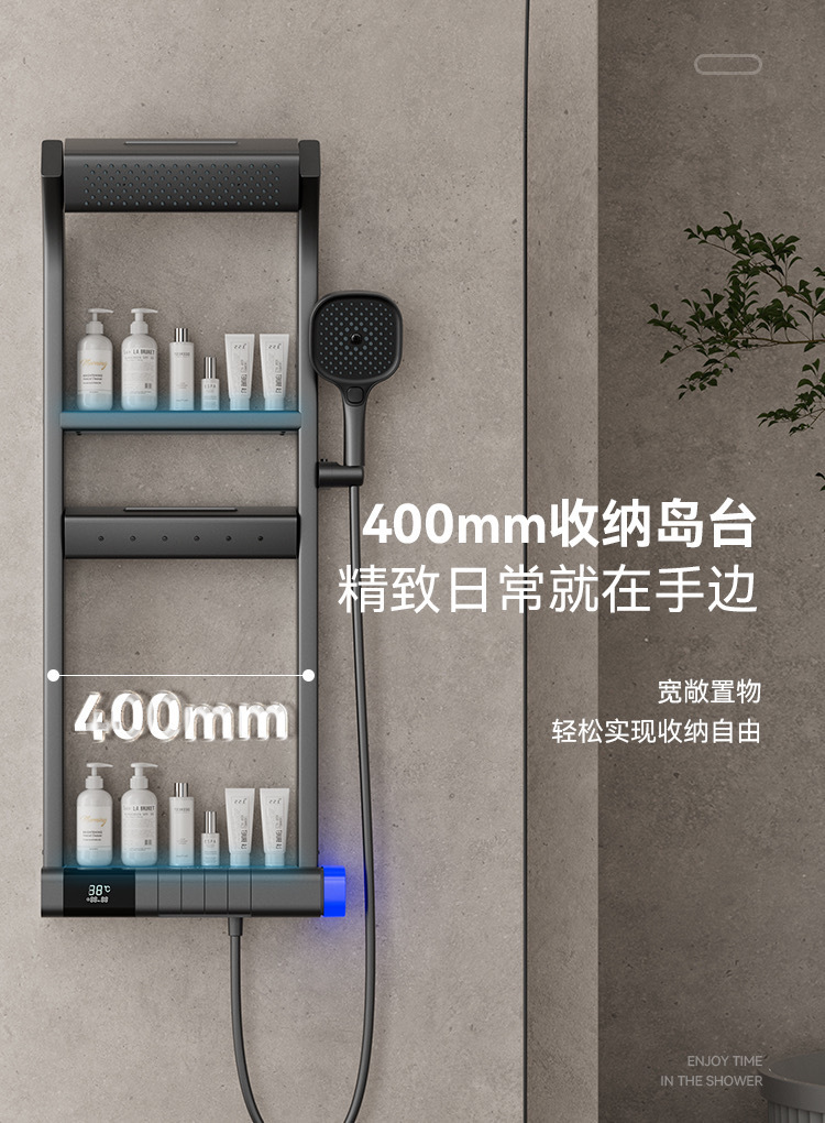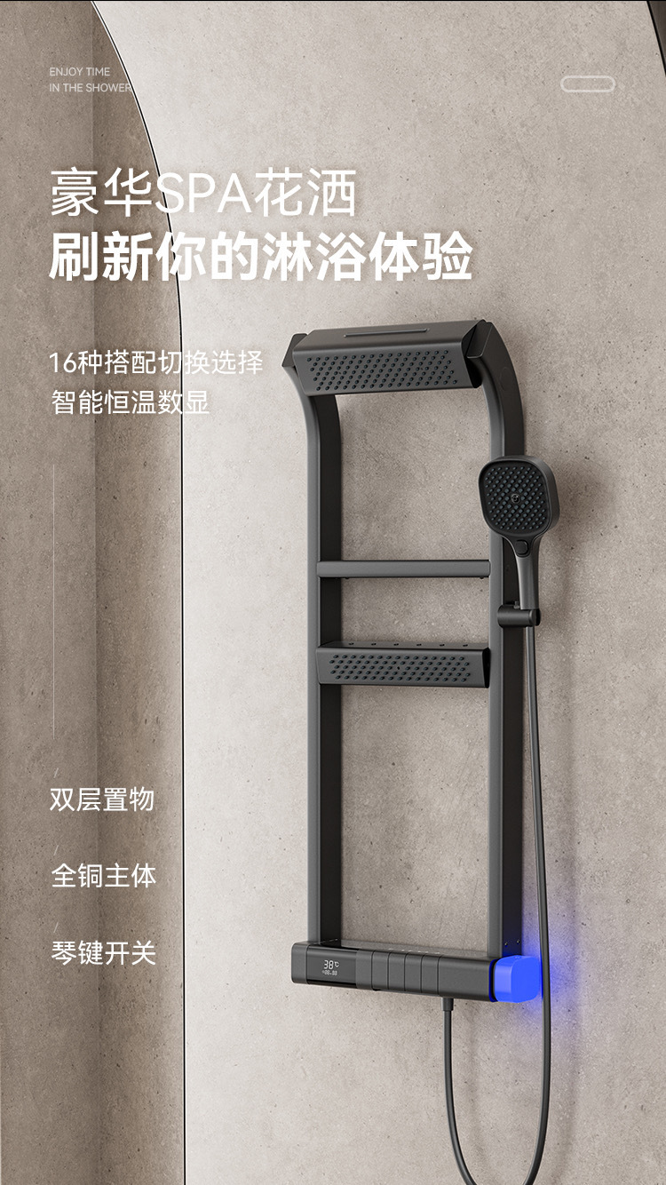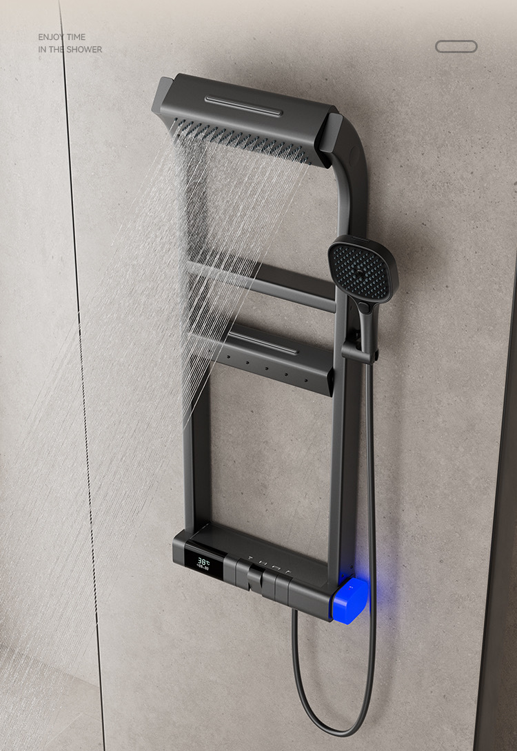 국경 다기능 일정한 온도 디지털 디스플레이 저장 랙 샤워 세트 가정용 욕실 욕실 압축 샤워 장치스토어 가기