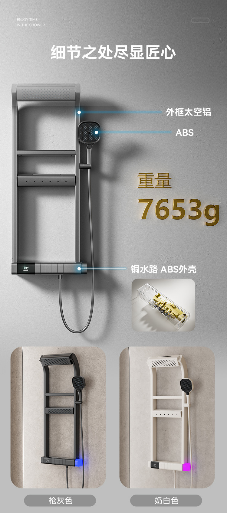 국경 다기능 일정한 온도 디지털 디스플레이 저장 랙 샤워 세트 가정용 욕실 욕실 압축 샤워 장치