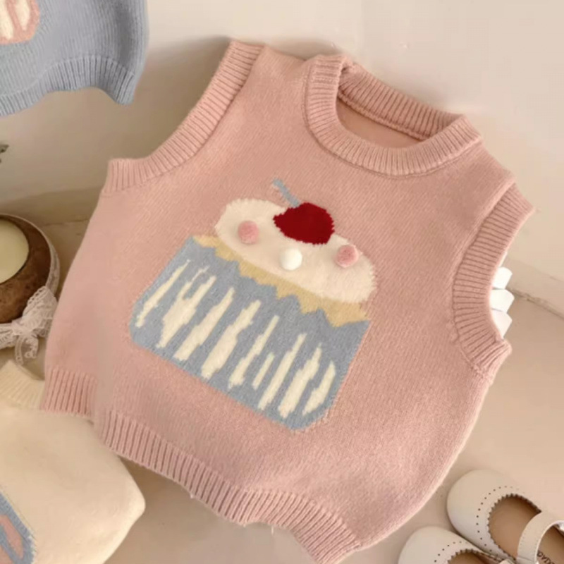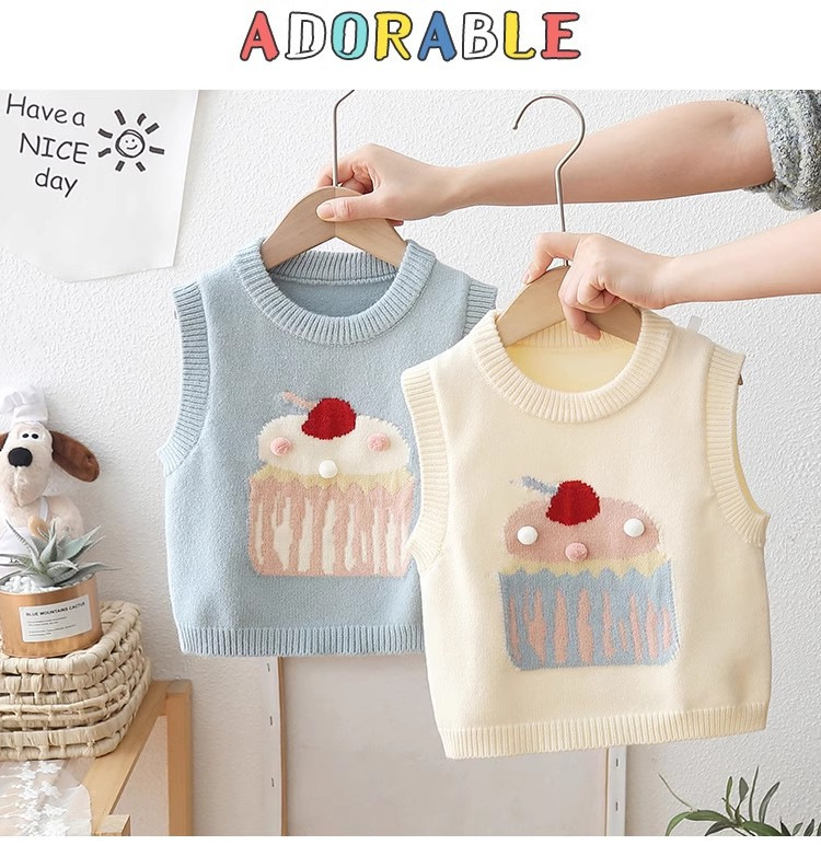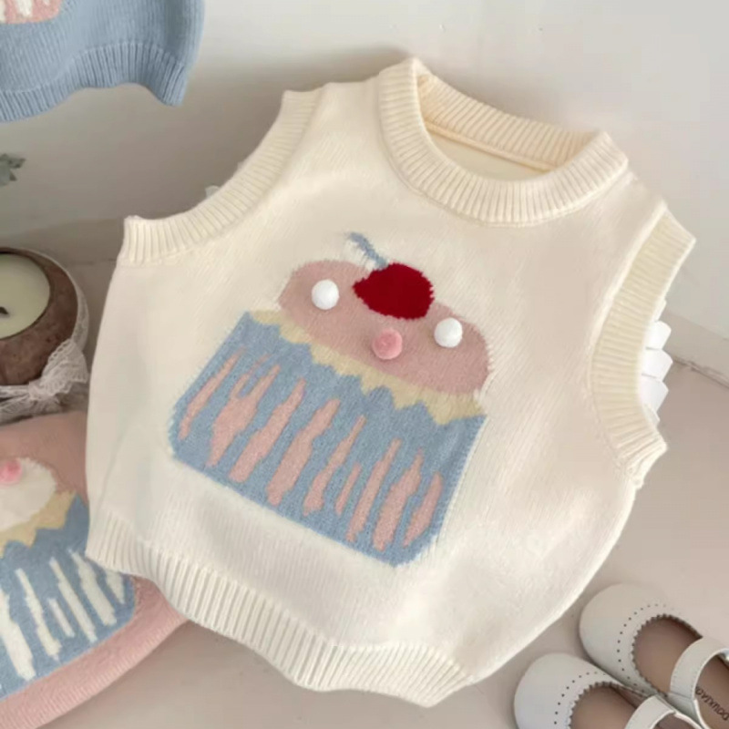 소녀 조끼 아기의 조끼 2024 봄과 가을 새로운 세련된 3 차원 니트 스웨터 자카드 아우터스토어 가기