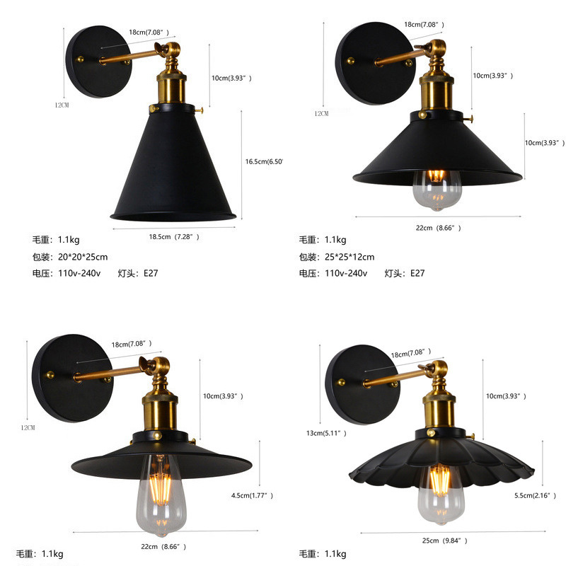 미국 복고풍 산업 스타일 크리에이티브 바 카페 장식 벽 램프 맞춤형 복도 발코니 철 아트 램프스토어 가기