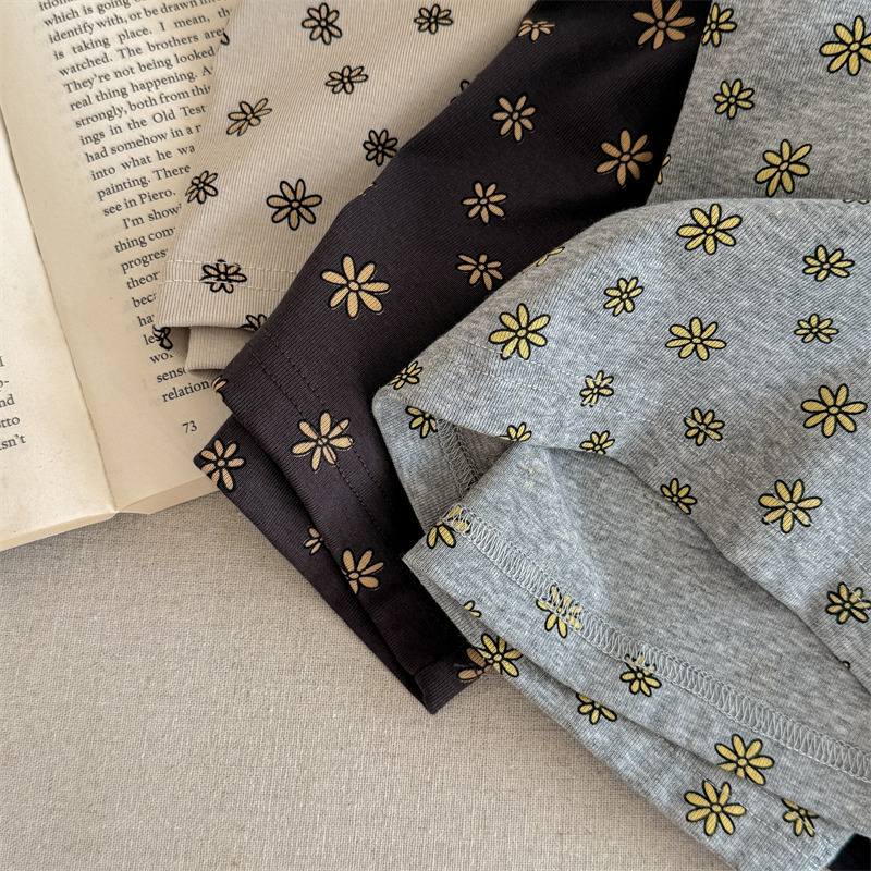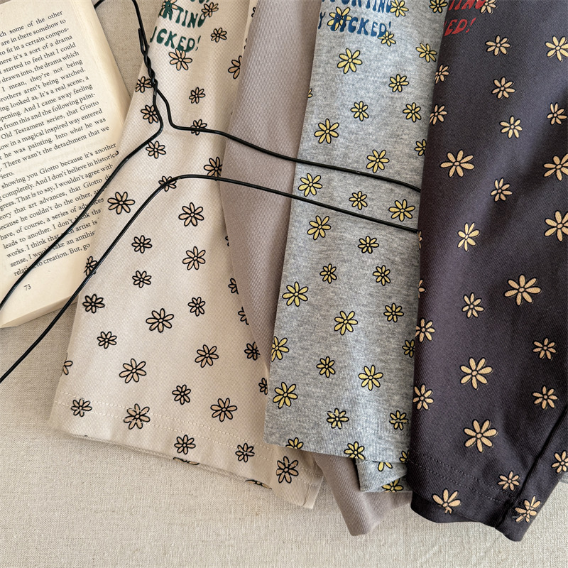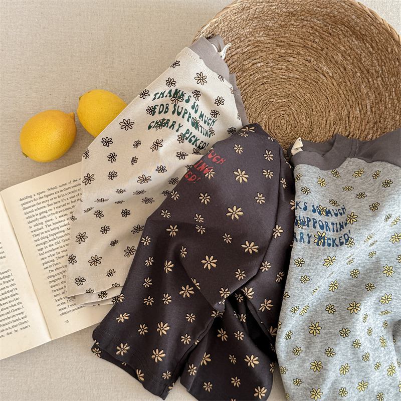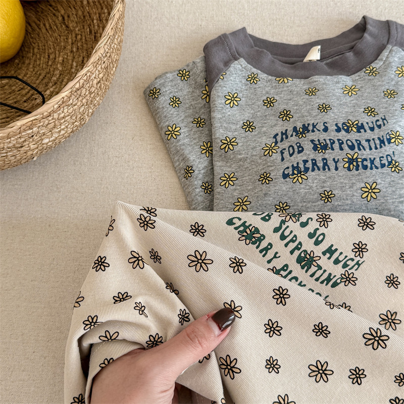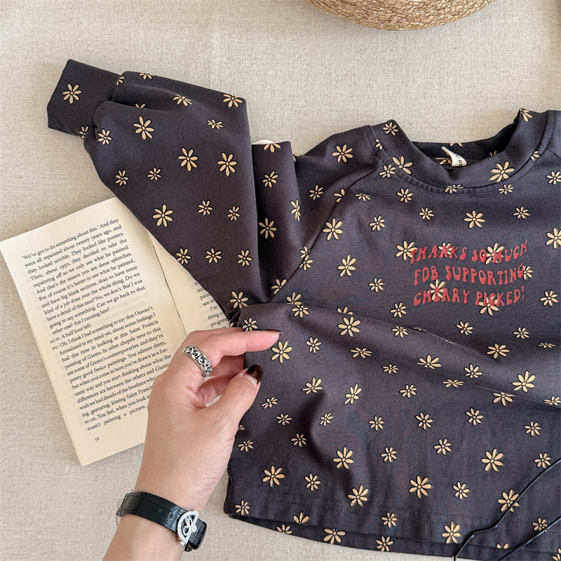 25 봄 어린이 긴팔 티셔츠 소녀 한국 컬러 블록 라글란 슬리브 꽃 편지 인쇄 라운드 넥 탑베이스 셔츠