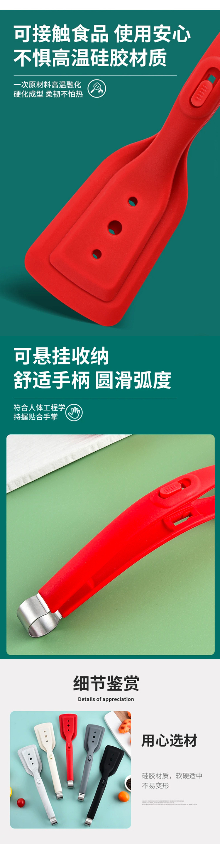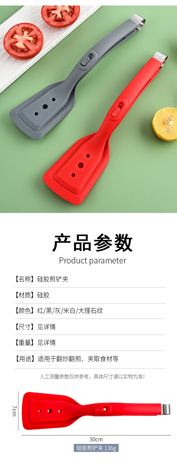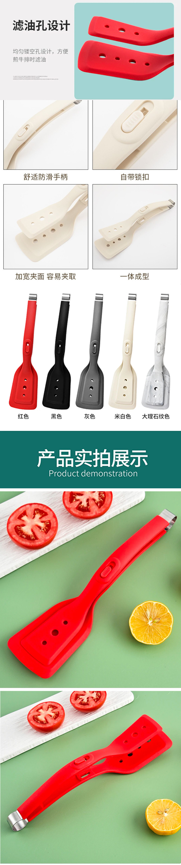 2 대 1 프라이팬 삽 클립 실리콘 삽 클립 다기능 튀긴 생선 스테이크 클립 스테인레스 스틸 팬케이크 삽 음식 클립