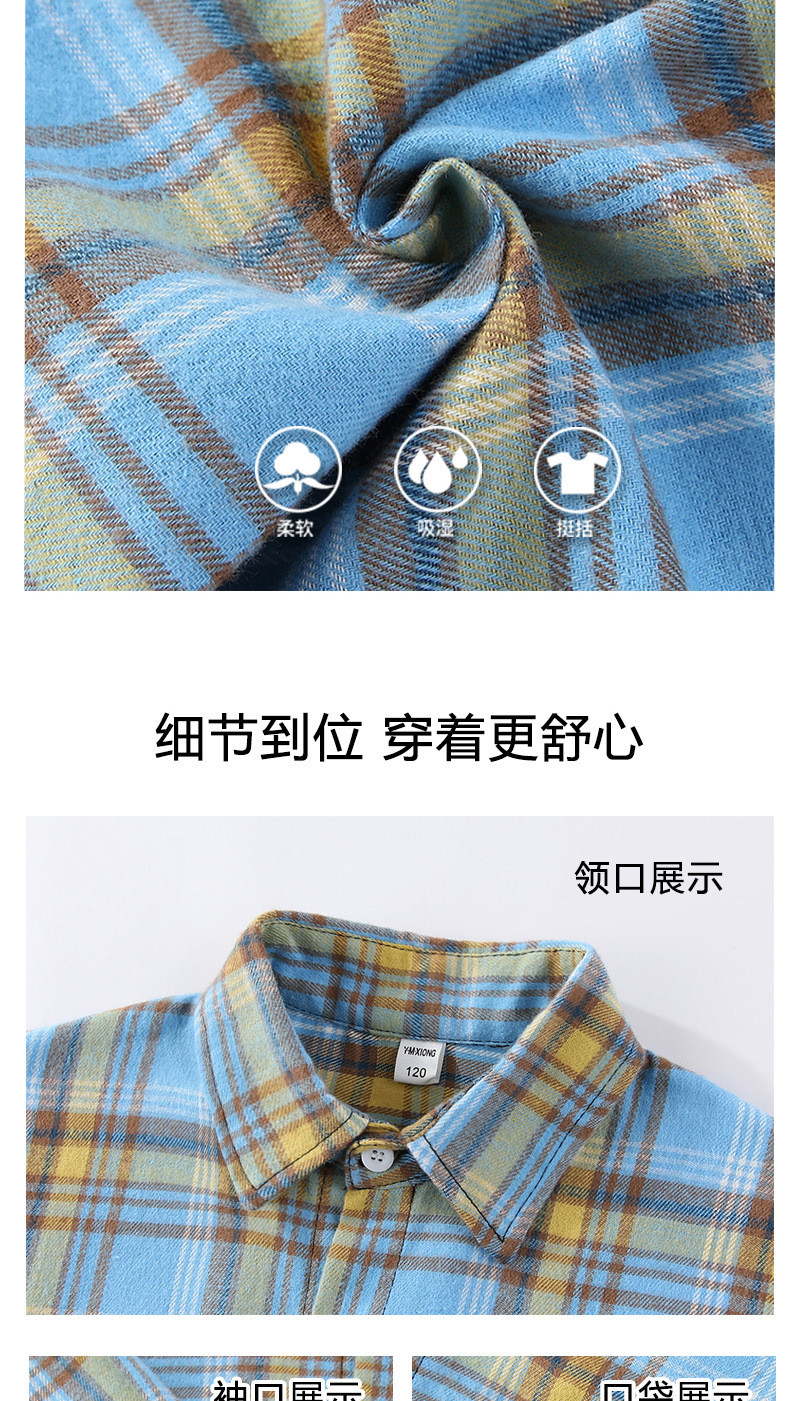남학생 셔츠 긴팔 면화 어린이 셔츠 무늬 스크럽 피부친화적 셔츠 걸스 올매치 한국식 뉴스타일스토어 가기