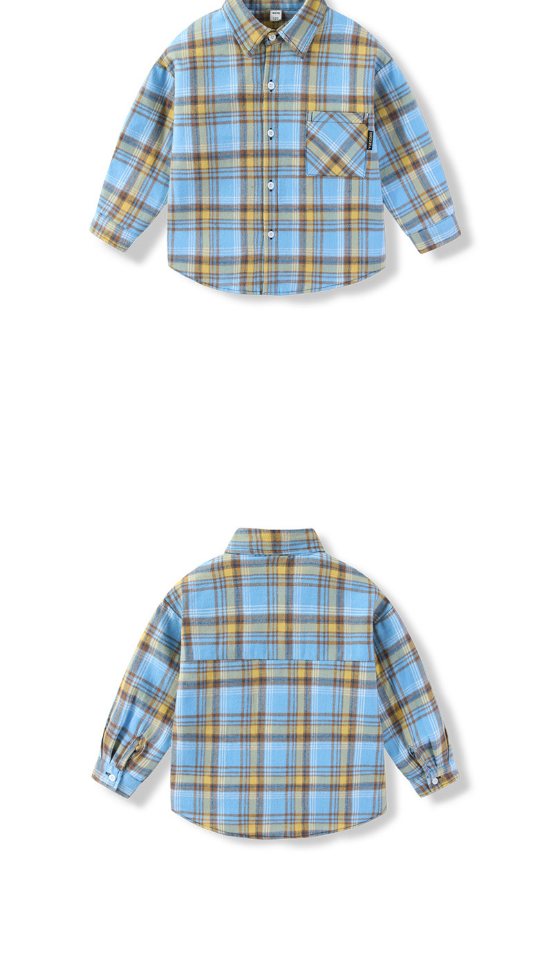 남학생 셔츠 긴팔 면화 어린이 셔츠 무늬 스크럽 피부친화적 셔츠 걸스 올매치 한국식 뉴스타일