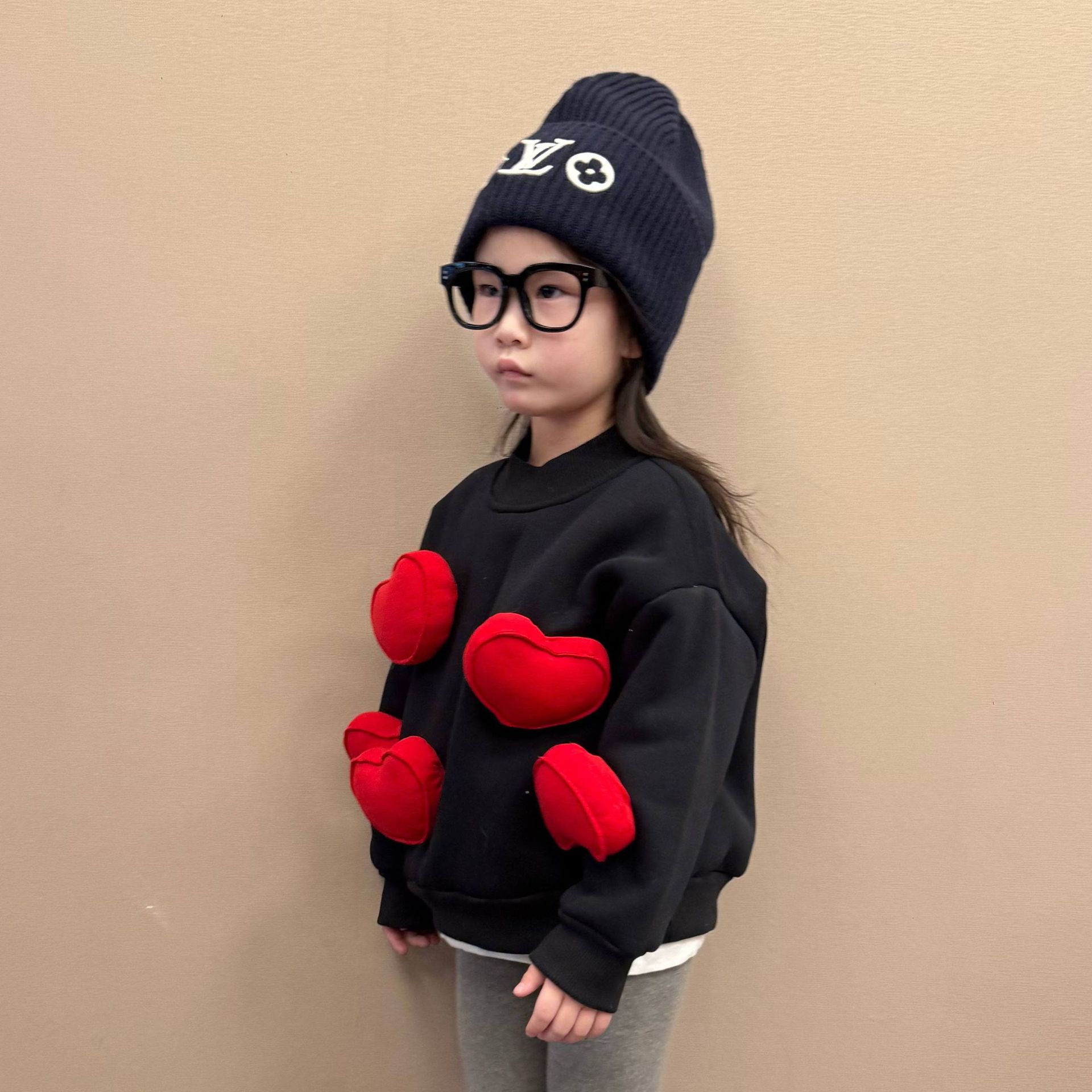 소녀들 한국식 입체 사랑 스웨트셔츠 2024 가을과 겨울 새 어린이 한식 유행 따뜻한 겨울 탑스토어 가기