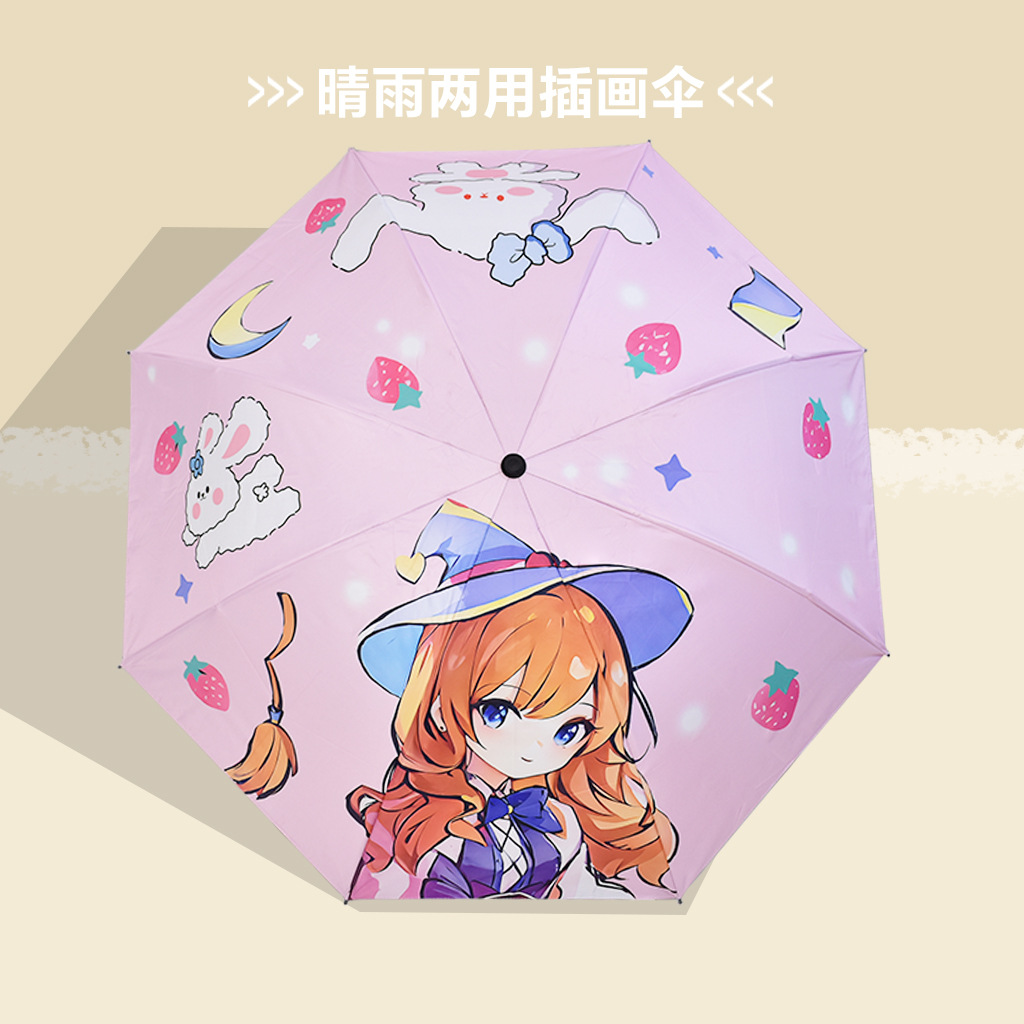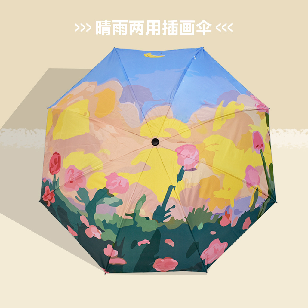 안전한 접이식 어린이 색 비와 빛나는 이중 사용 남성과 여성의 차양 선 스크린 우산 수동 우산 디지털 인쇄