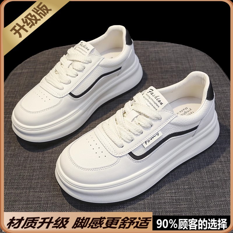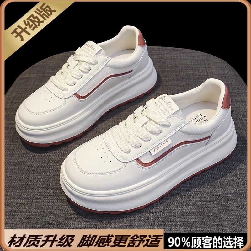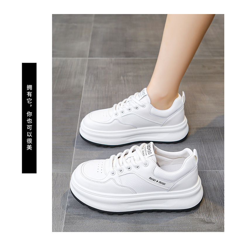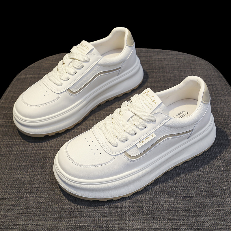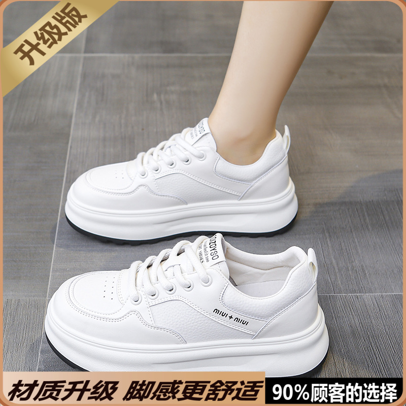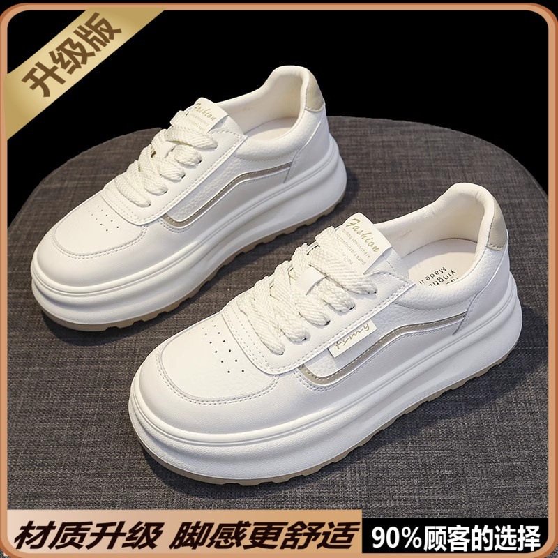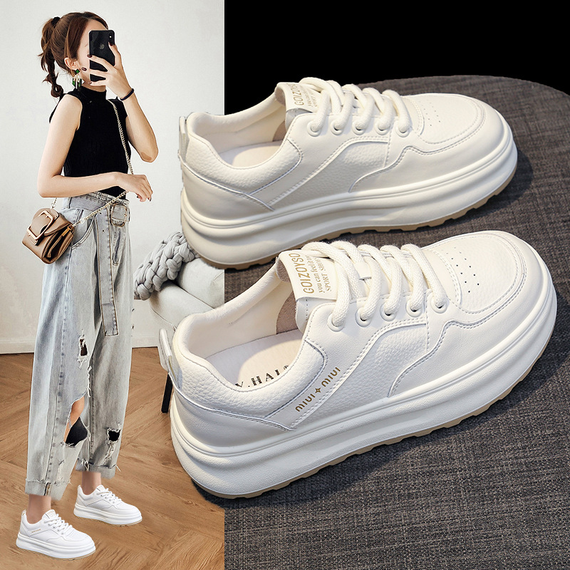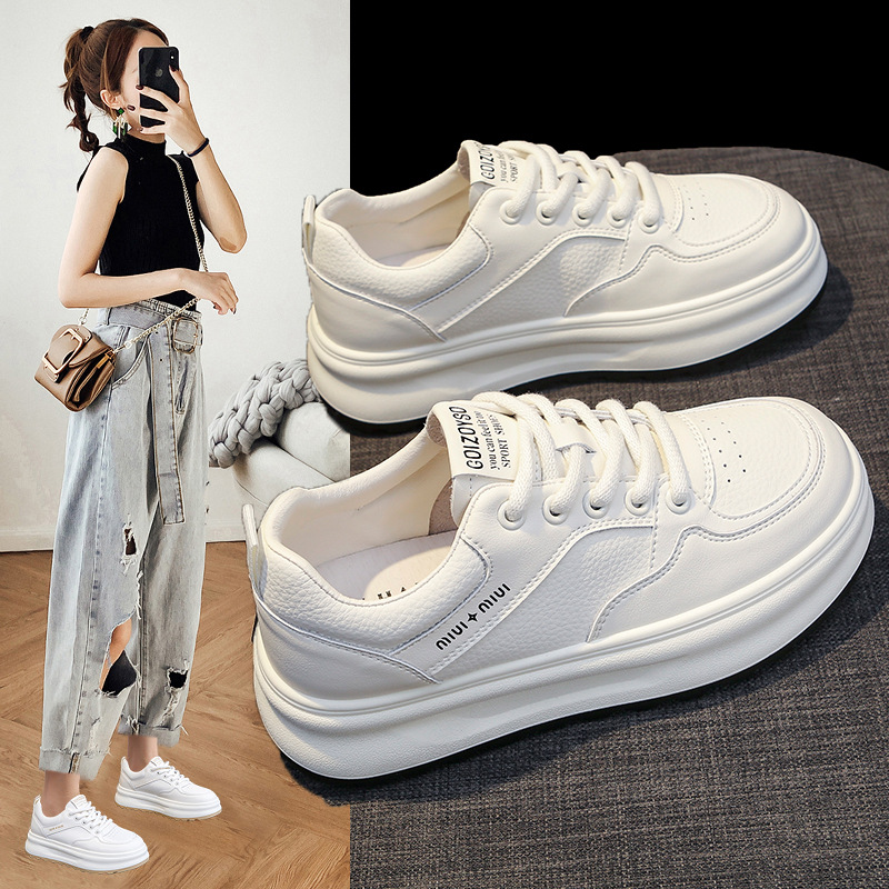 배설물 느낌의 작은 흰색 신발 여성의 2024 가을 새로운 올 매치 두꺼운 밑창 스포츠 보드 신발 미끄럼 방지 방수 운동화