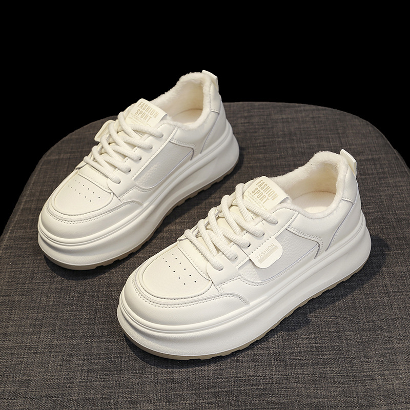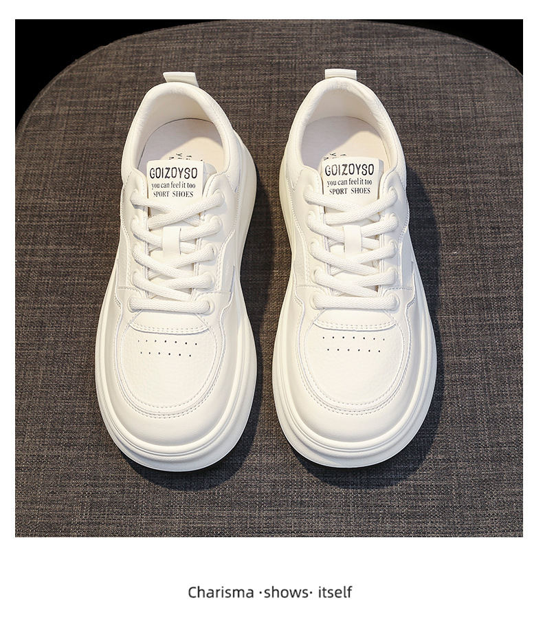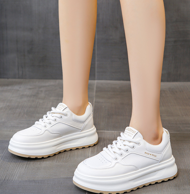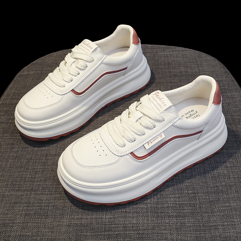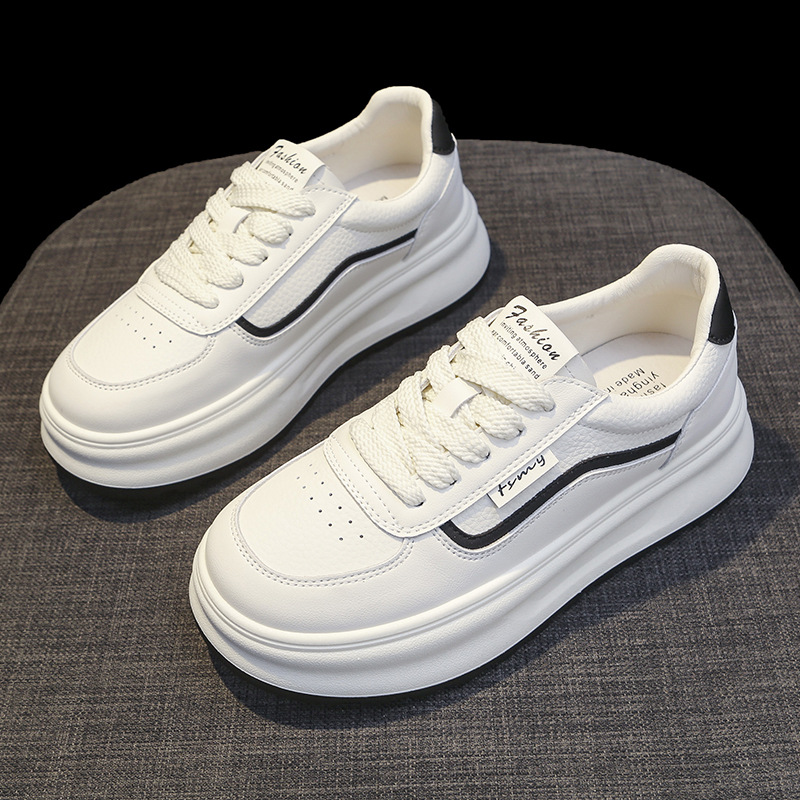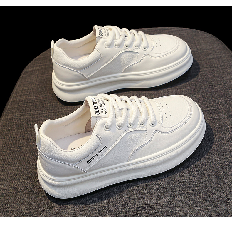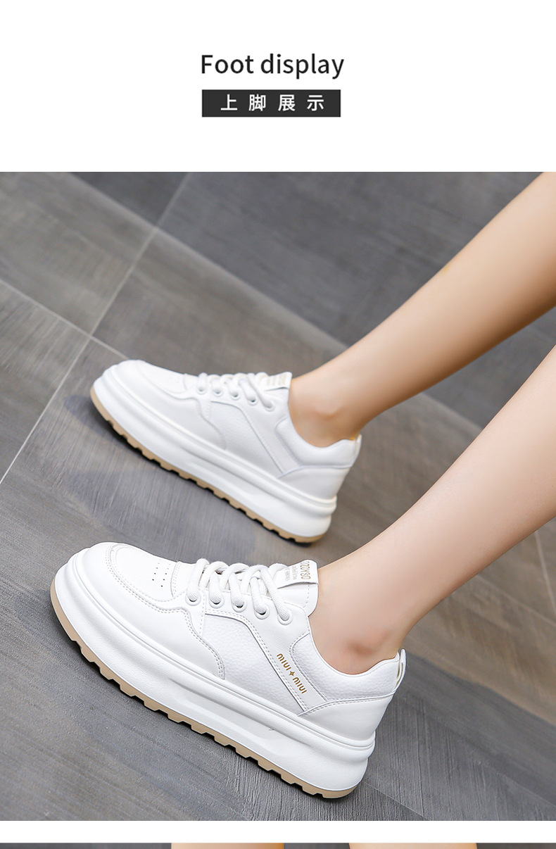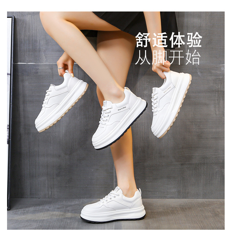 배설물 느낌의 작은 흰색 신발 여성의 2024 가을 새로운 올 매치 두꺼운 밑창 스포츠 보드 신발 미끄럼 방지 방수 운동화