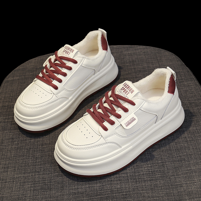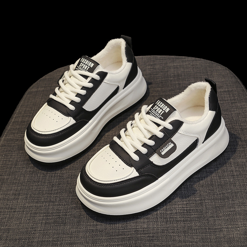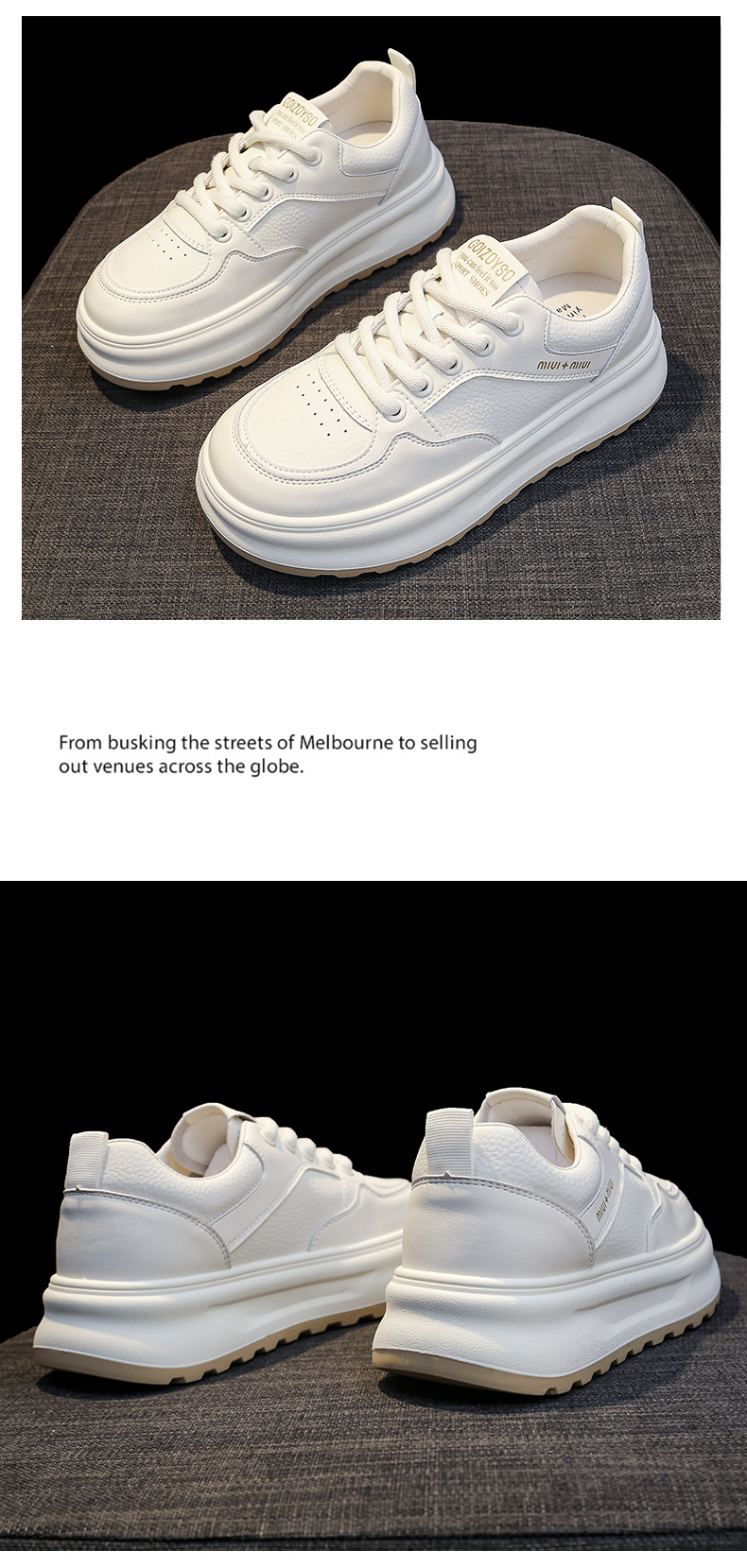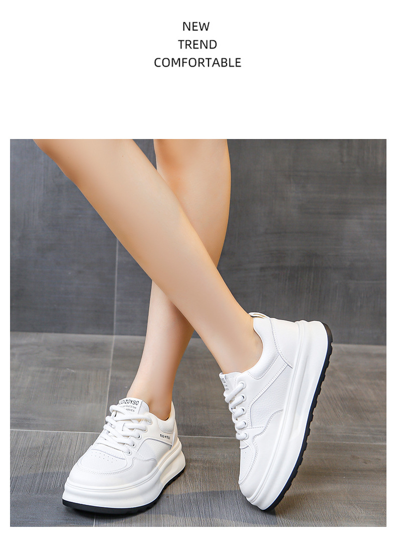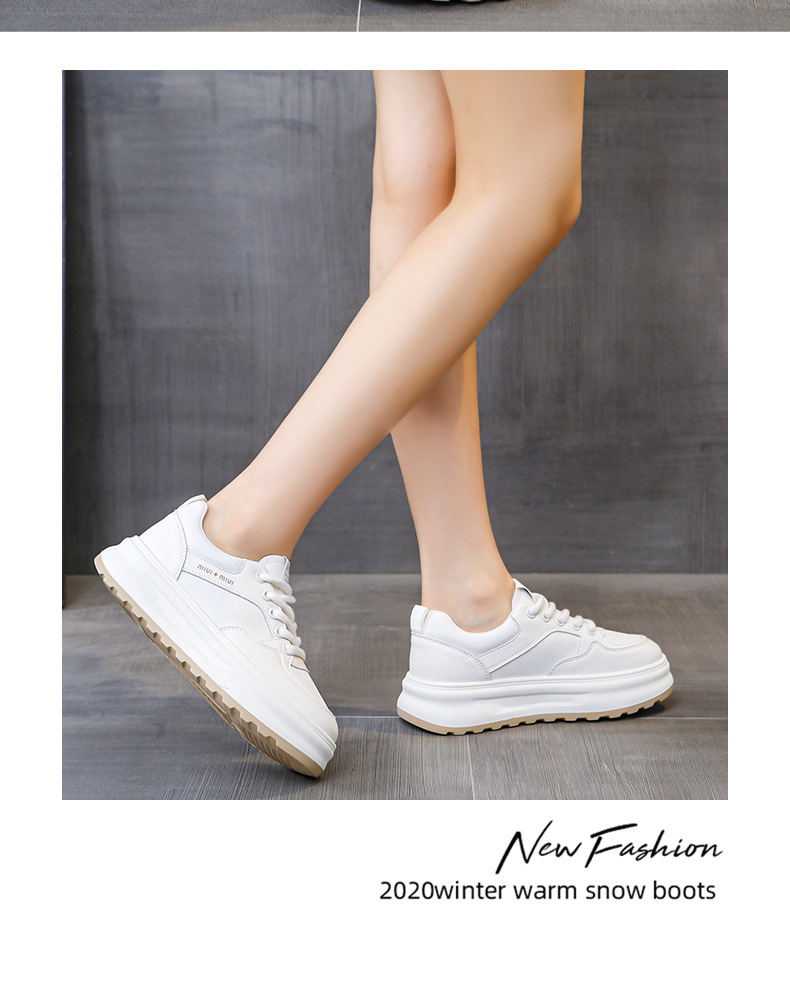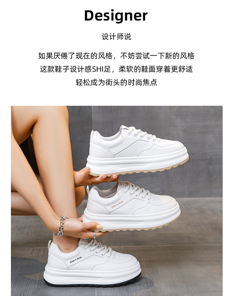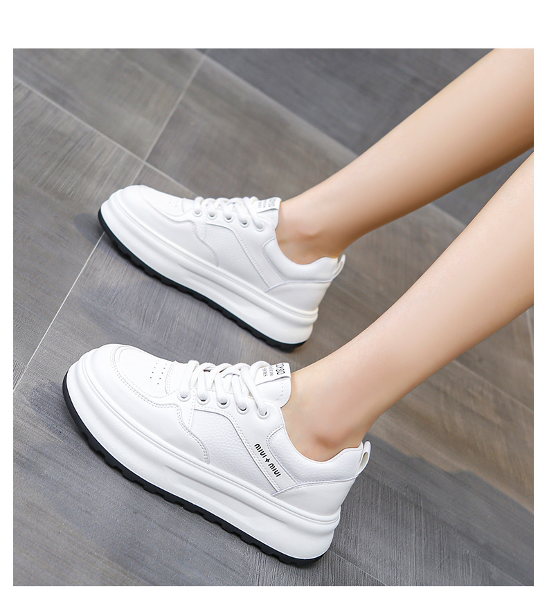 배설물 느낌의 작은 흰색 신발 여성의 2024 가을 새로운 올 매치 두꺼운 밑창 스포츠 보드 신발 미끄럼 방지 방수 운동화