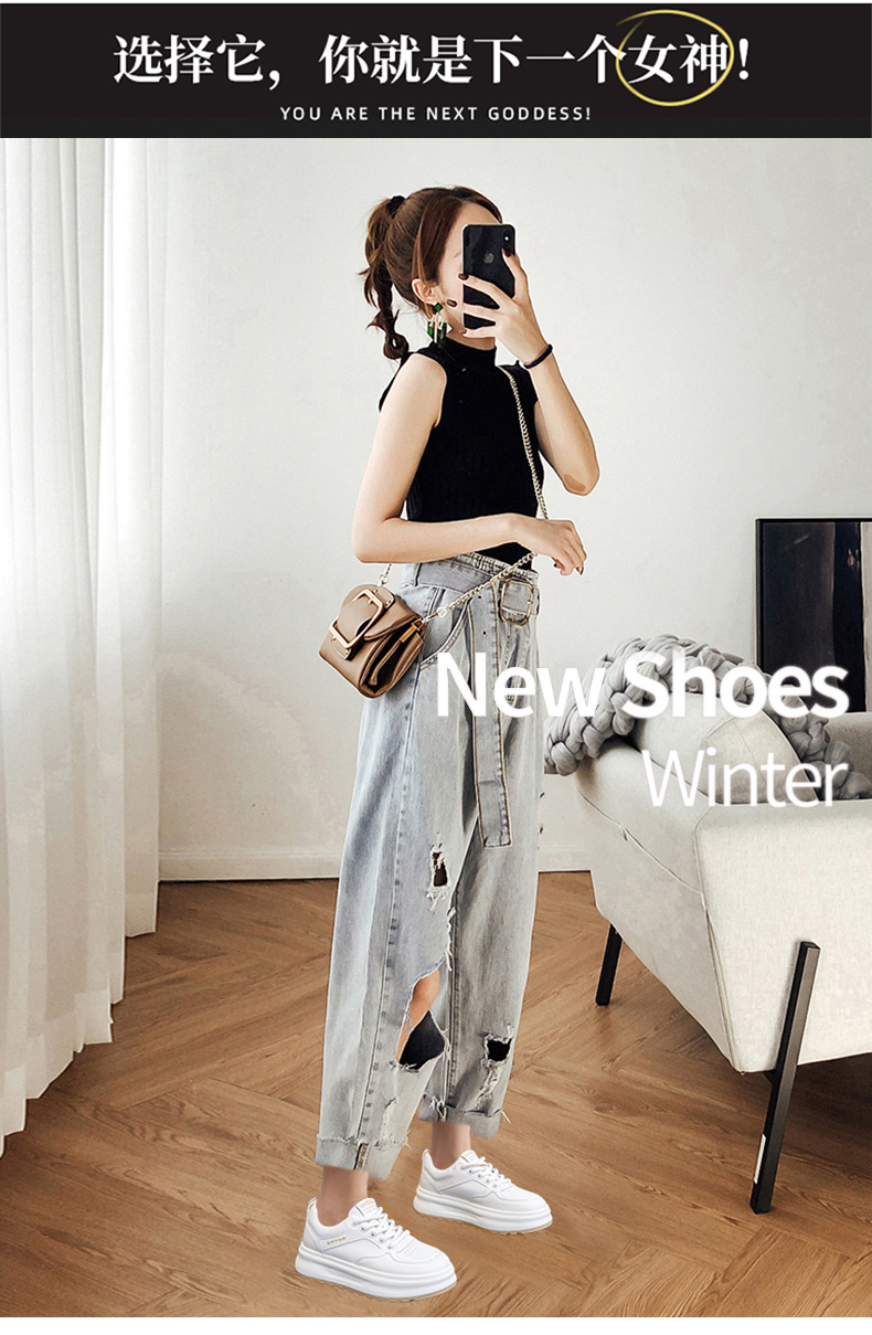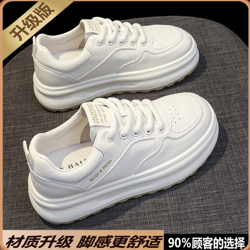 배설물 느낌의 작은 흰색 신발 여성의 2024 가을 새로운 올 매치 두꺼운 밑창 스포츠 보드 신발 미끄럼 방지 방수 운동화스토어 가기