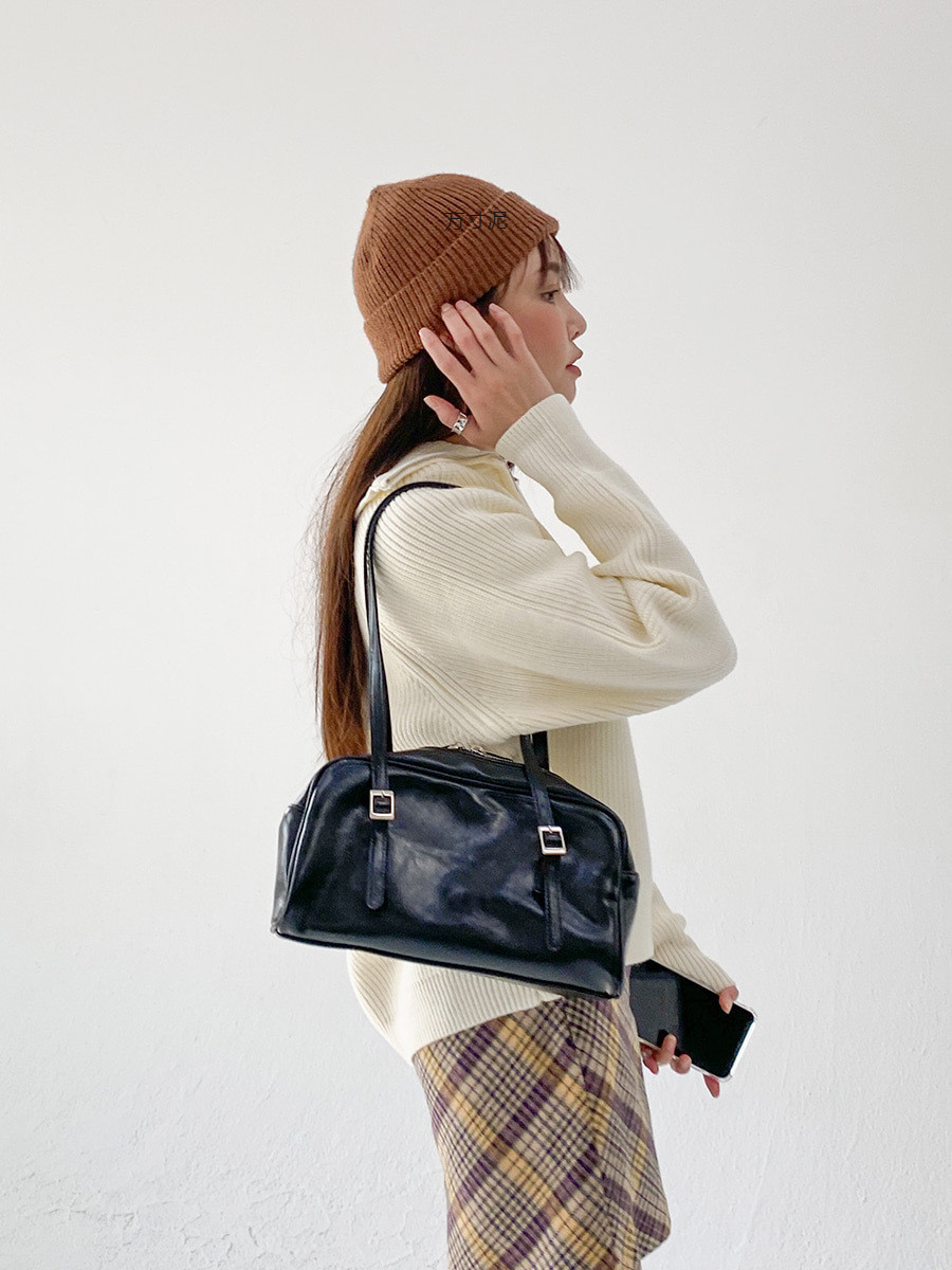 초봄 그린 오일 왁스 가죽 숄더백, 독특한 언더암 백, 신상 다용도 여성 가방, 원피스 도매스토어 가기