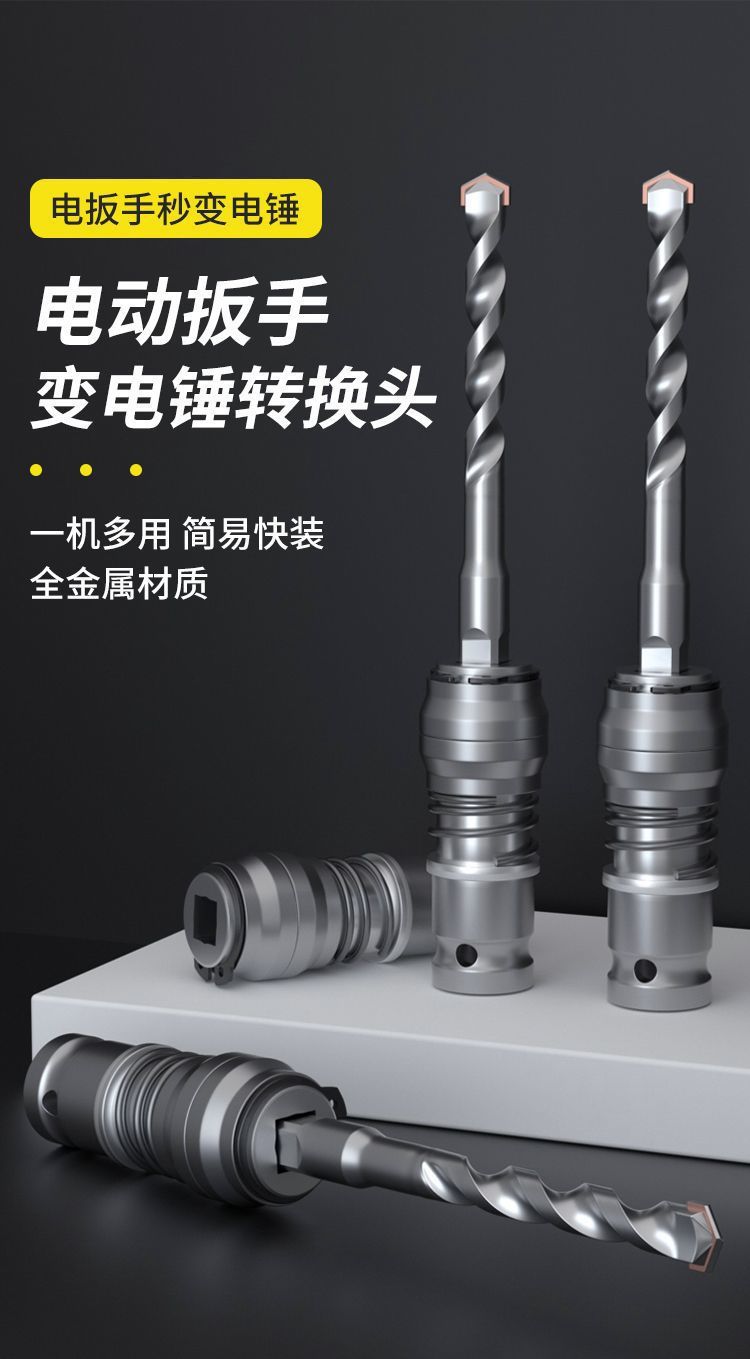 • [내구성 합금] 전기 해머 변환 헤드 + 드릴 비트 5종 세트 - [전기 해머 변환 헤드: 전기 해머 비용 절감] 신제품 특별 제공