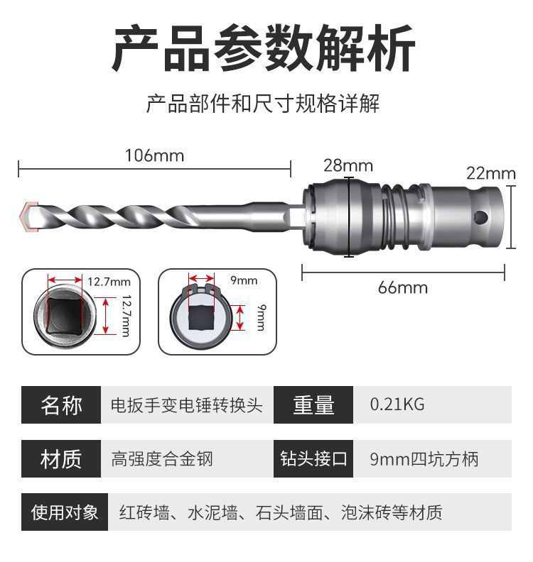 • 전동 해머 변환 헤드 + 드릴 비트 5종 세트 [오늘 특별 제공] - [전기 해머 변환 헤드: 전기 해머 비용 절약] 신제품 특별 제공