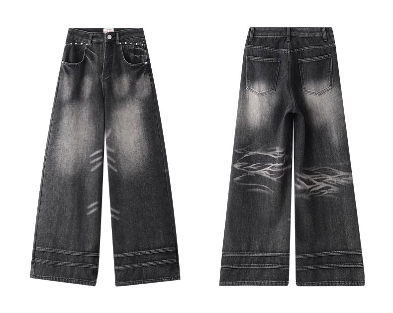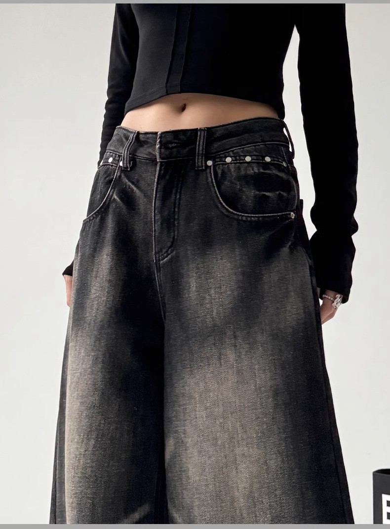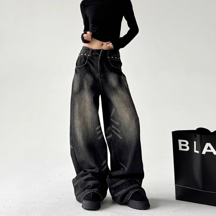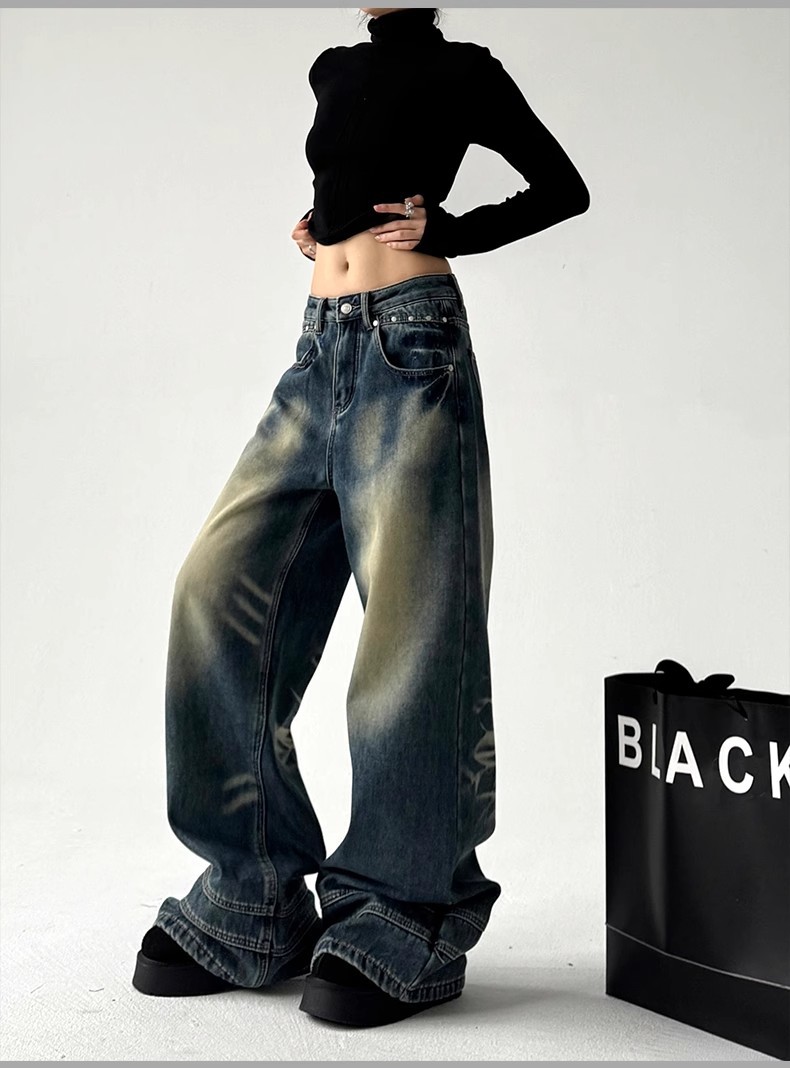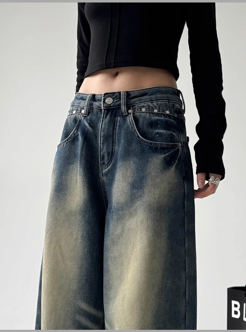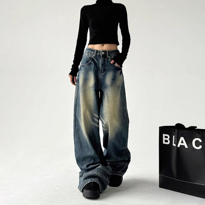 2025 봄 새로운 미국 스타일 레트로 스트리트 스파이스 소녀 와이드 레그 청바지 여성용 틈새 느슨한 슬리밍 스트레이트 레그 바지