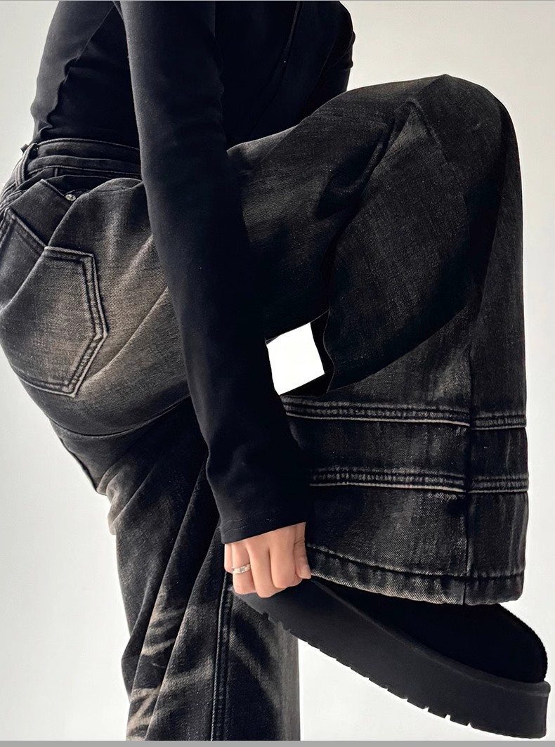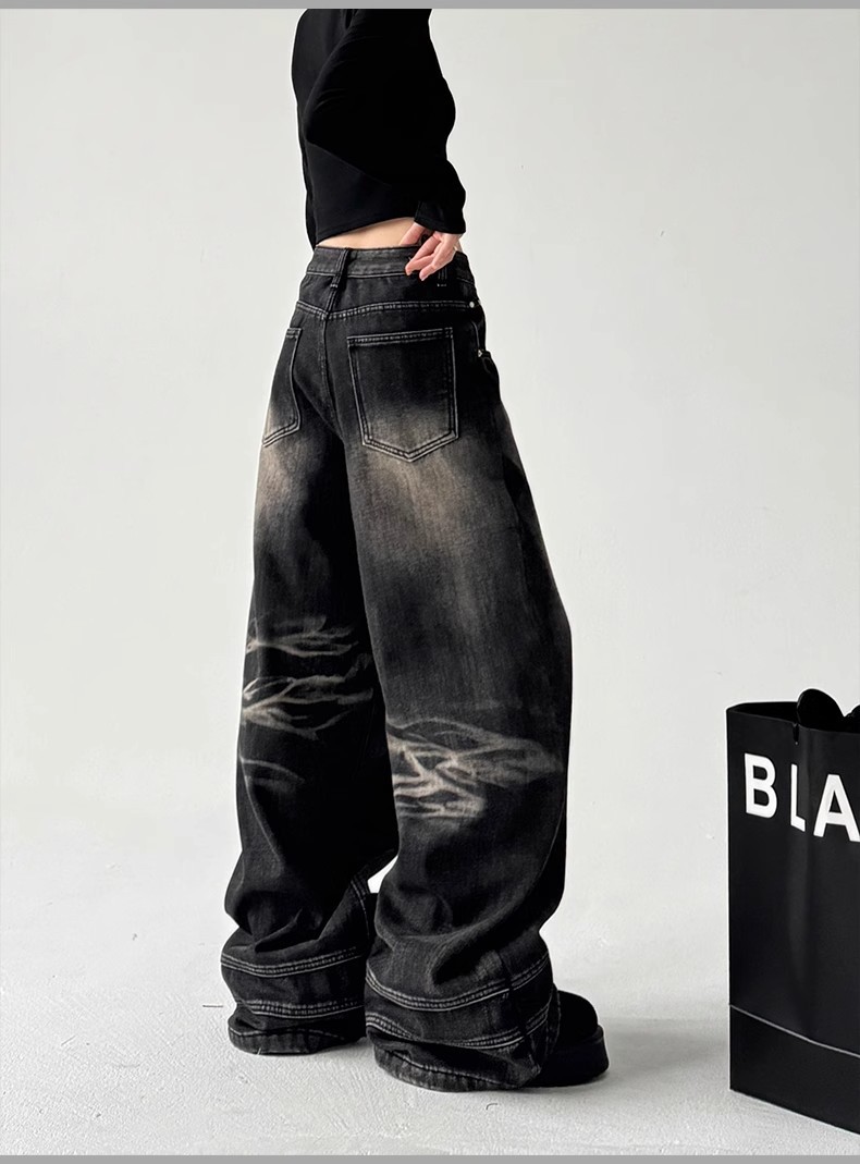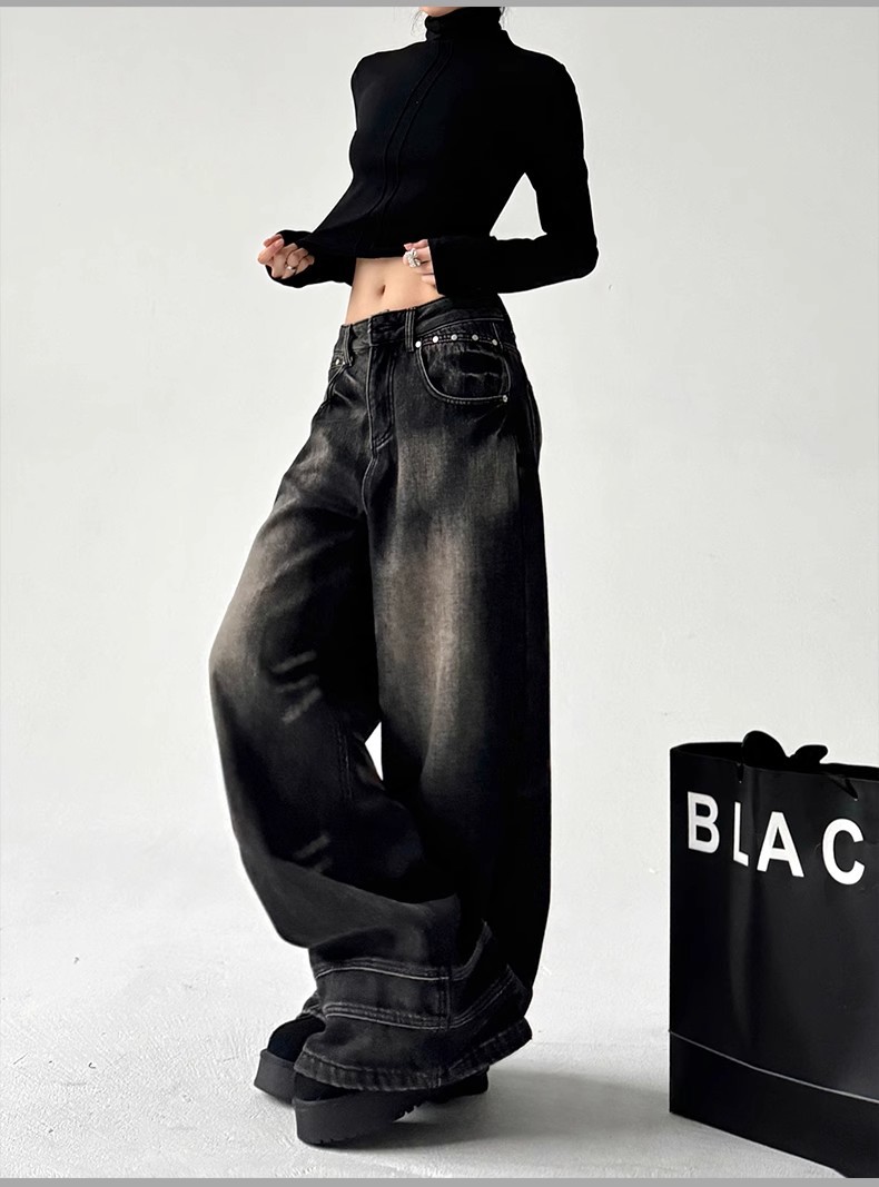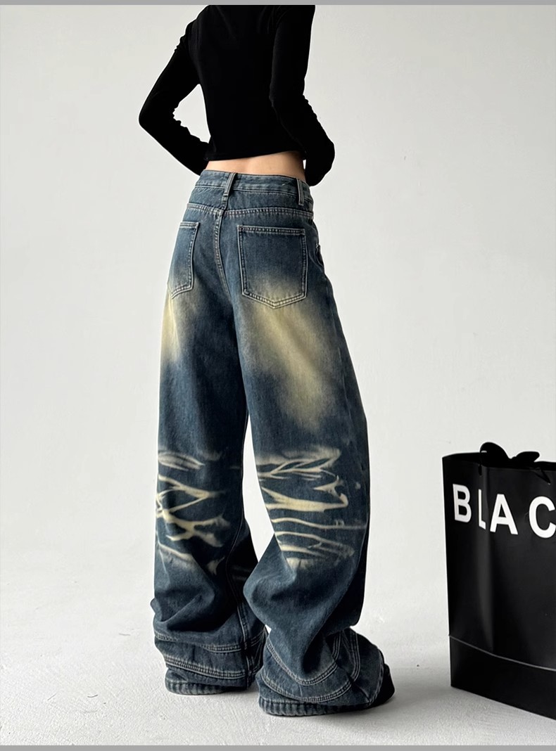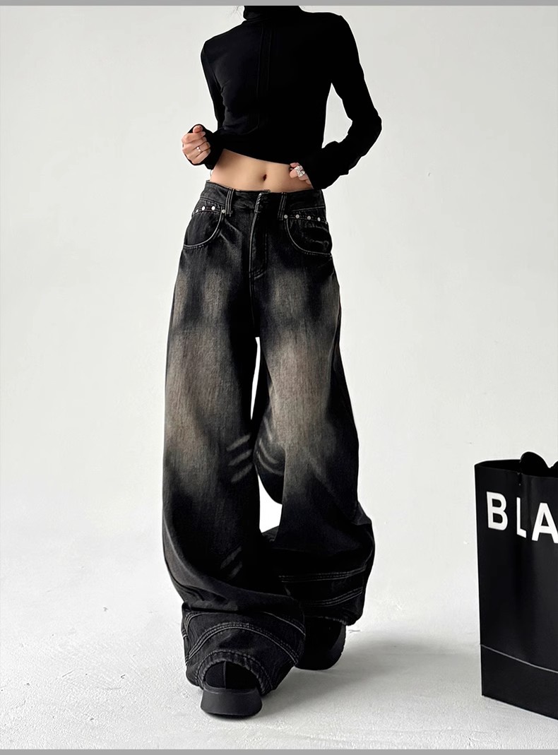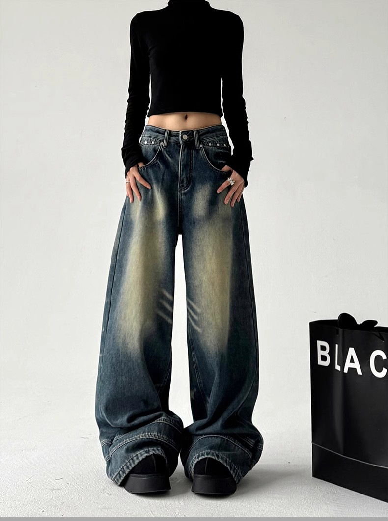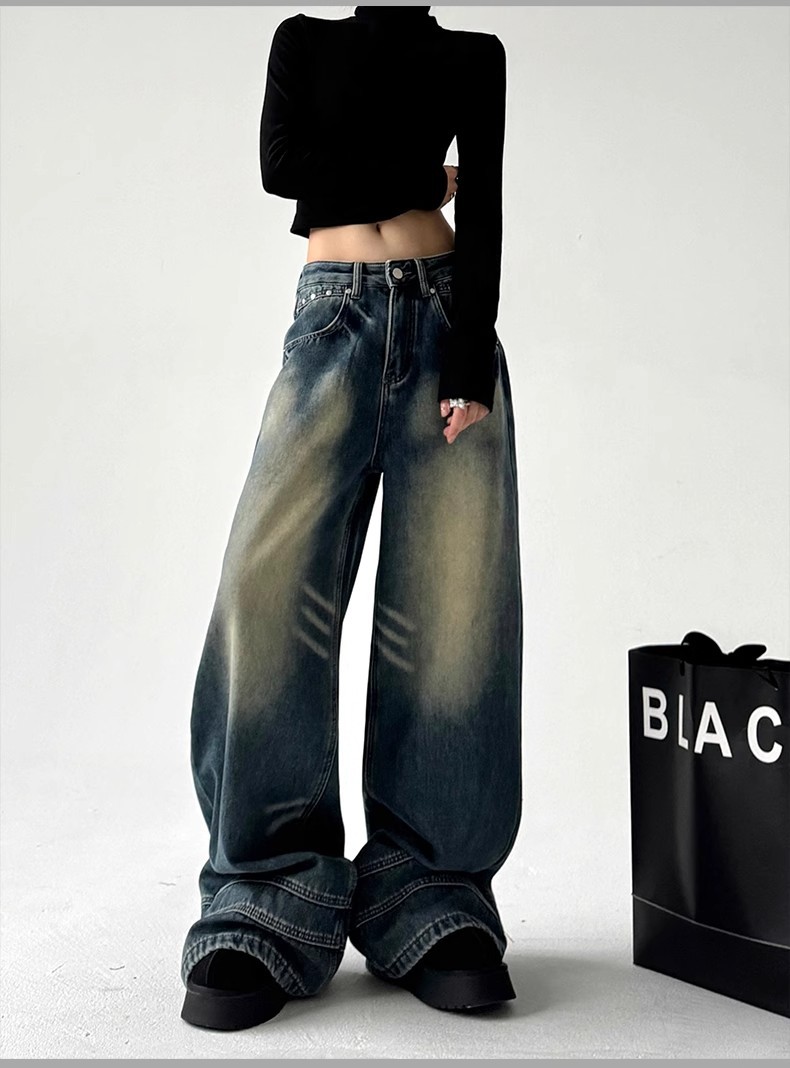 2025 봄 새로운 미국 스타일 레트로 스트리트 스파이스 소녀 와이드 레그 청바지 여성용 틈새 느슨한 슬리밍 스트레이트 레그 바지스토어 가기