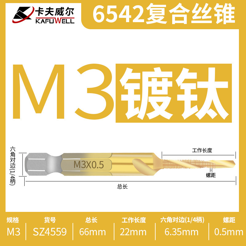 • M3 티타늄 코팅 드릴 태핑 일체형 [6542] 복합 탭 SZ4559