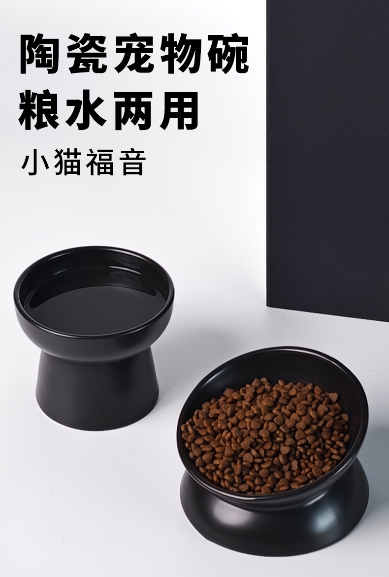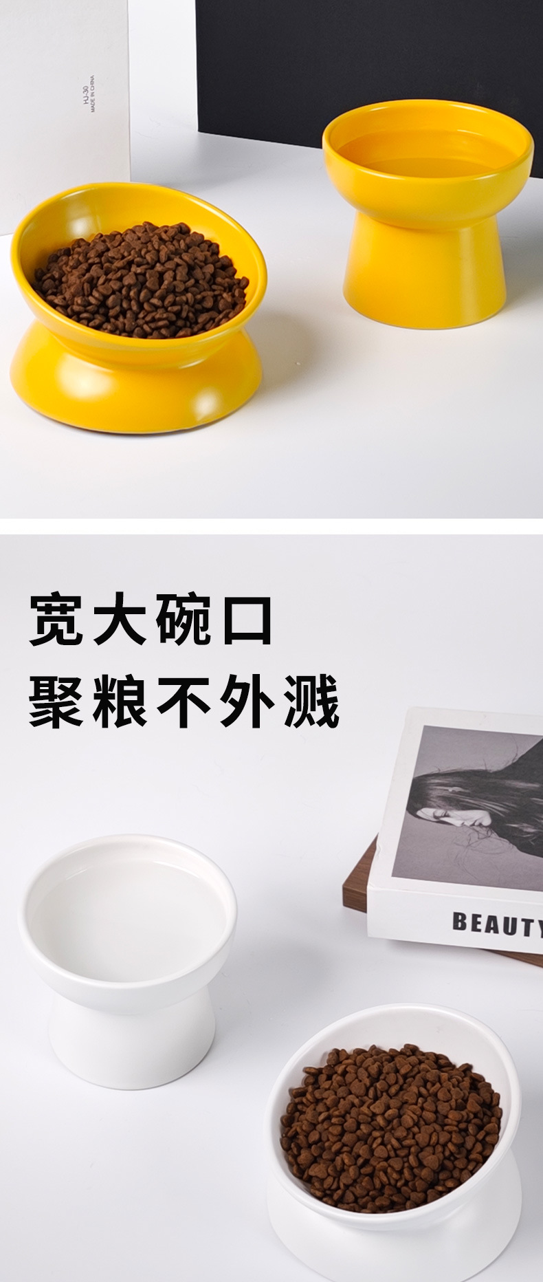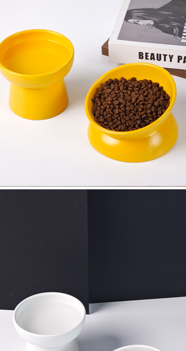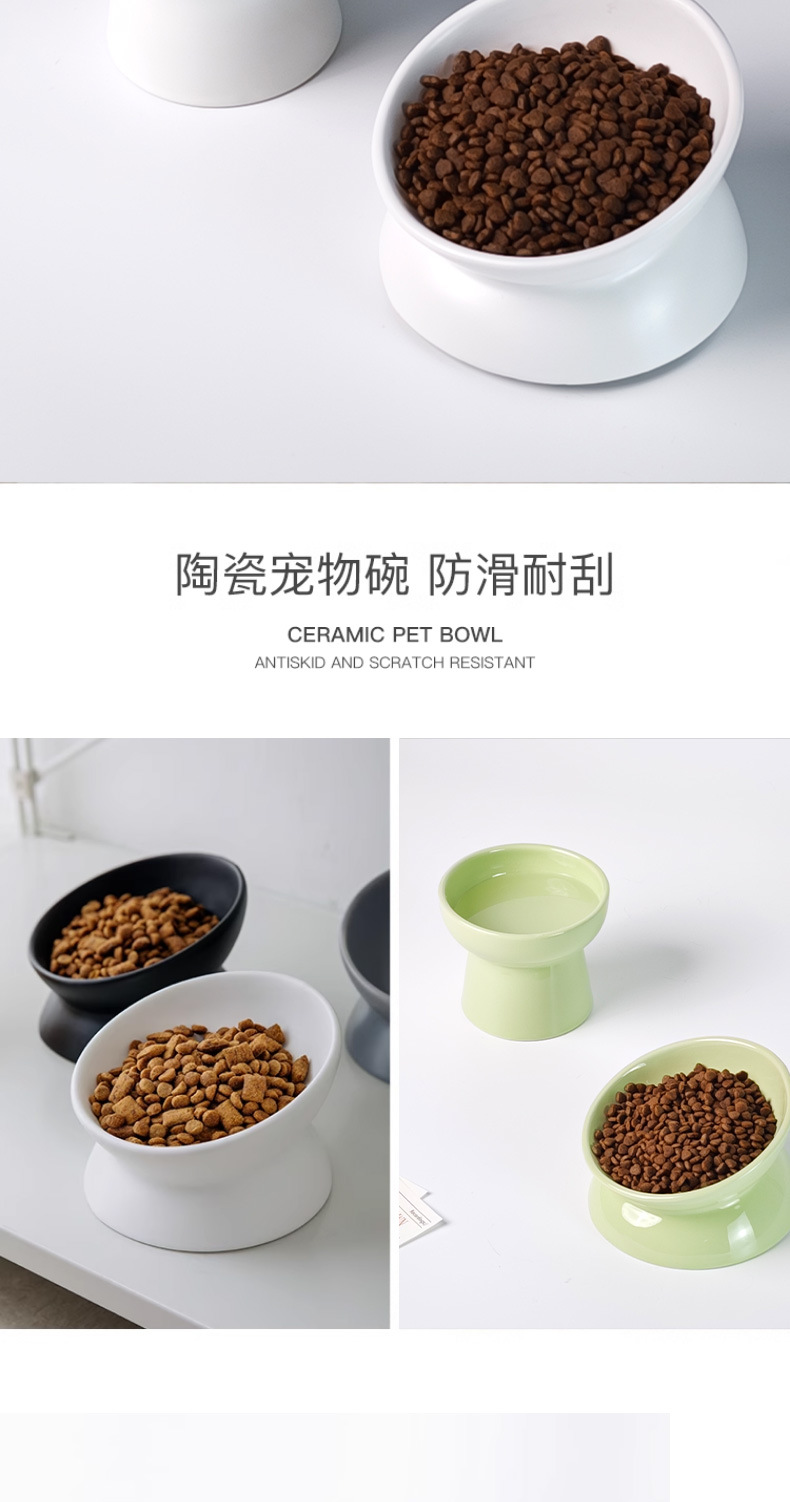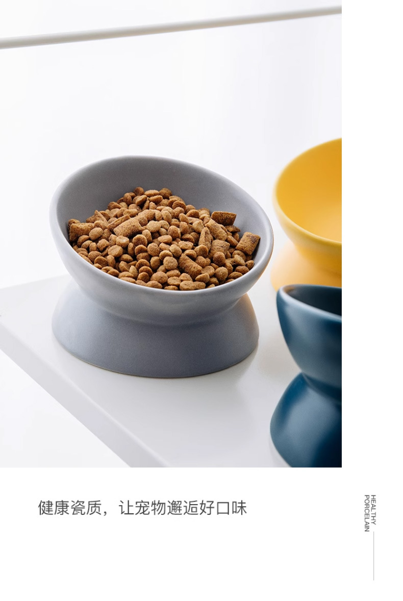 비스듬한 입구와 높은 받침대가 있는 독창적인 세라믹 고양이/강아지/애완동물 그릇, 작은 사이즈, 귀엽고 다채로운 색상의 물그릇, 광택이 나는 큰 입구스토어 가기