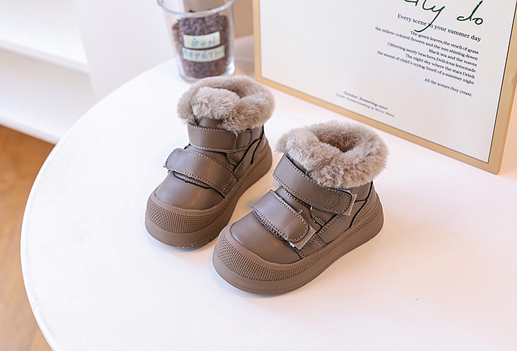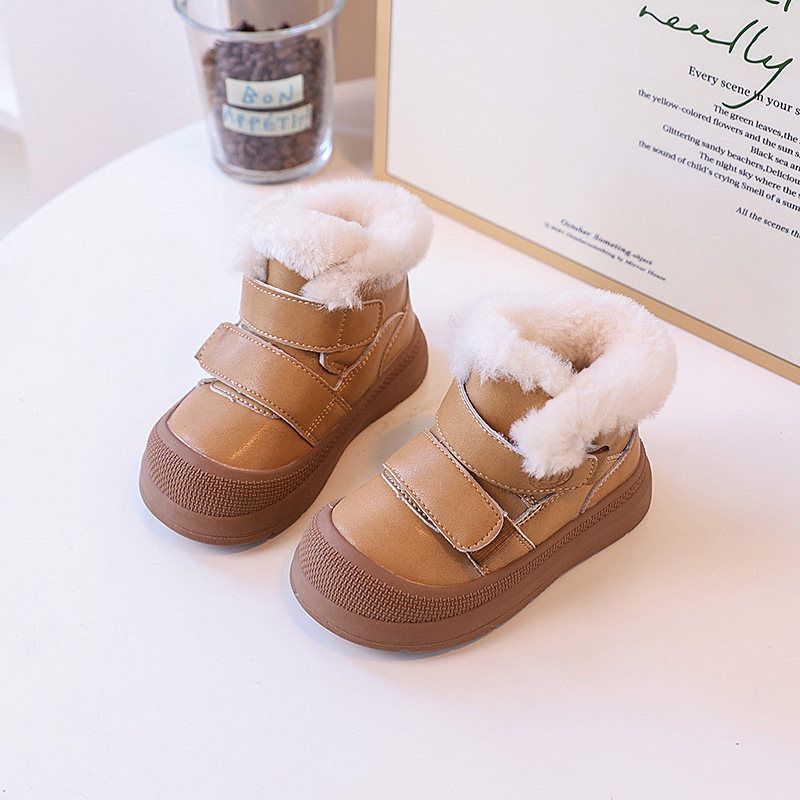 어린이 스노우 부츠 기모 따뜻한 큰면 부츠 겨울 새로운 눈화 신발 소녀 어린이 미끄럼 방지 방수 가죽 부츠 부드러운스토어 가기