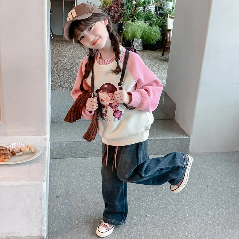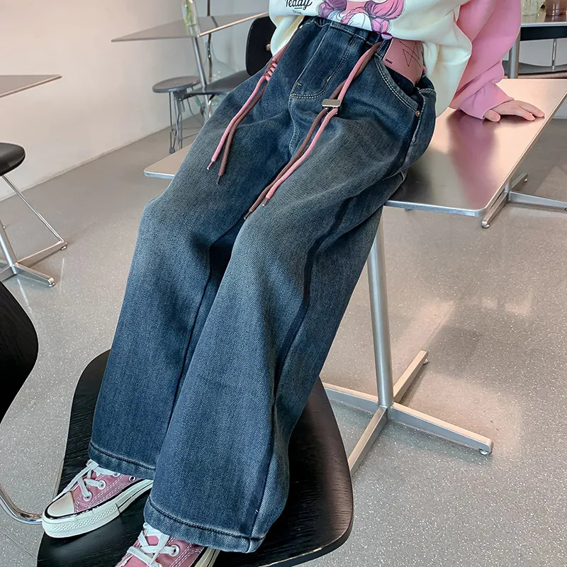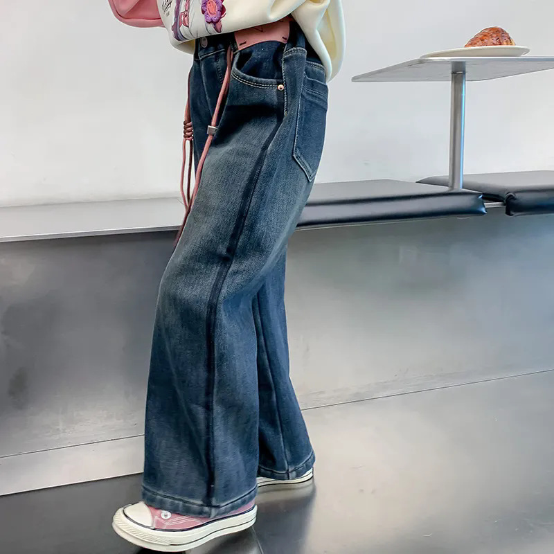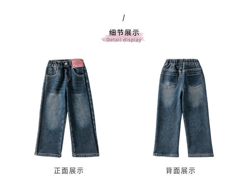 소녀 기모 청바지 겨울 2024 새로운 스타일 어린이 가을과 겨울 두꺼운 바지 어린 소녀의 캐주얼 바지스토어 가기